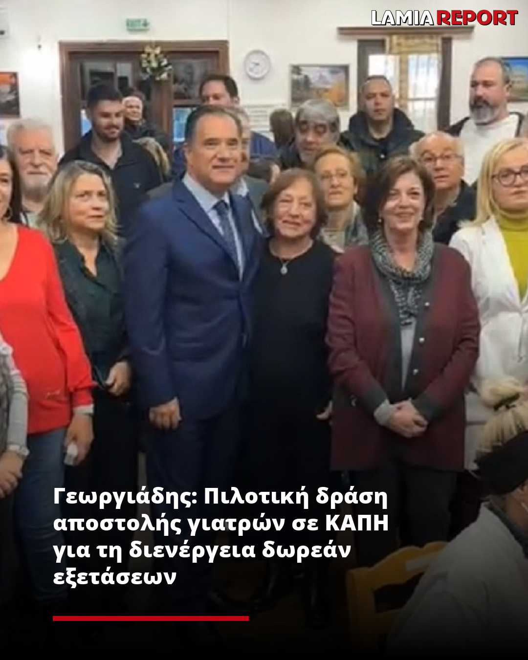 «Σήμερα ξεκινήσαμε πιλοτικά μία φανταστική δράση που πρώτος την είχε σκεφθεί και ξεκινήσει ο Θάνος Πλεύρης, αλλά τώρα θα την επεκτείνουμε παντού. Θα στέλνουμε ομάδες ιατρών και νοσηλευτών μία φορά το μήνα από τα Κέντρα Υγείας σε γειτονικά ΚΑΠΗ. Εκεί οι ομάδες αυτές θα διενεργούν τις προληπτικές εξετάσεις αίματος, εξέταση καρδιάς, πίεσης κλπ σε όλους τους ενδιαφερομένους στο ΚΑΠΗ και θα τους συνταγογραφούν και τα φάρμακα τους. Ολα αυτά φυσικά δωρεάν. Έτσι θα εξασφαλίσουμε και την τακτική τους παρακολούθηση και την ορθή ρύθμιση της φαρμακευτικής τους αγωγής και θα τους γλιτώσουμε από την ταλαιπωρία των αναμονών.