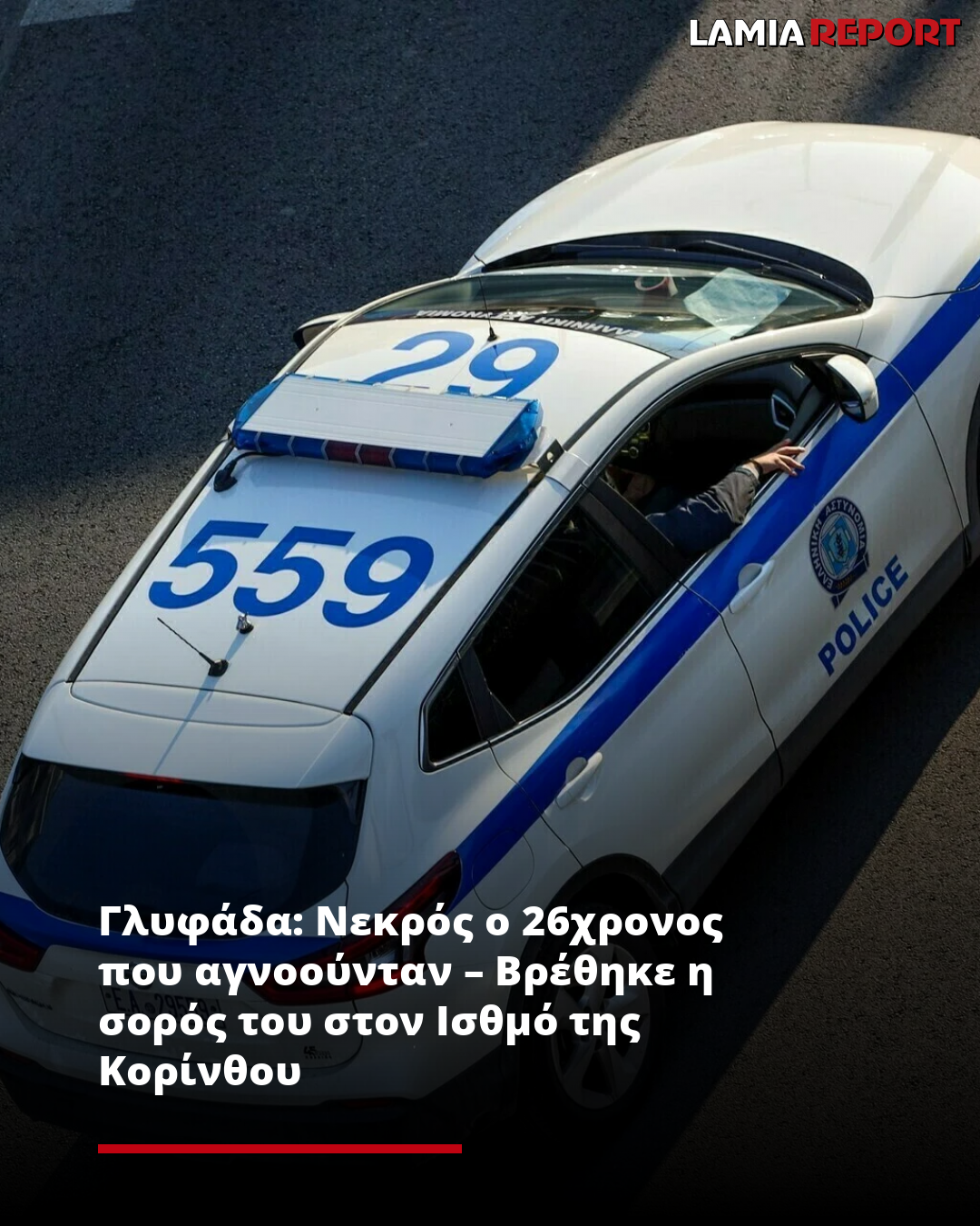 Τραγική κατάληξη είχε η εξαφάνιση ενός 26χρονου άνδρα που αγνοούνταν από τις 14 Φεβρουαρίου 2026 από την Γλυφάδα, με την σορό του να εντοπίζεται στον Ισθμό της Κορίνθου.