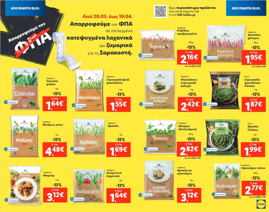 H Lidl Ελλάς απορροφά τον ΦΠΑ σε επιλεγμένα κατεψυγμένα λαχανικά και ζυμαρικά για τη Σαρακοστή