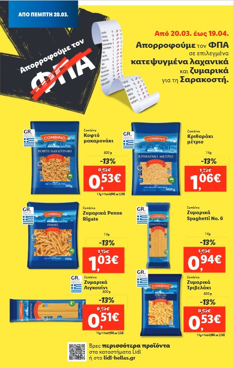 Αναγνωρίζοντας τη συνεχιζόμενη πίεση στα εισοδήματα των Ελλήνων καταναλωτών, η Lidl Ελλάς προχωρά σε μία ακόμα ουσιαστική παρέμβαση που διασφαλίζει πως οι πελάτες της μπορούν να απολαμβάνουν ποιοτικά προϊόντα στις ήδη χαμηλές τιμές της εταιρείας, χωρίς επιπλέον κόστος ΦΠΑ.