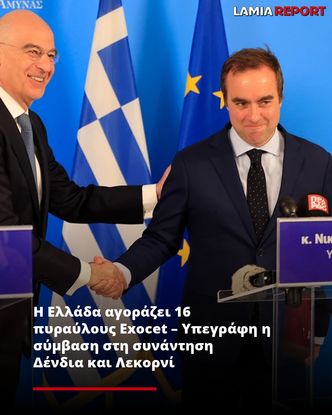 Υπεγράφη κατά τη συνάντηση του Νίκου Δένδια με τον γάλλο ομόλογό του, Σεμπαστιάν Λεκορνί, η σύμβαση για την αγορά 16 πυραύλων Exocet.