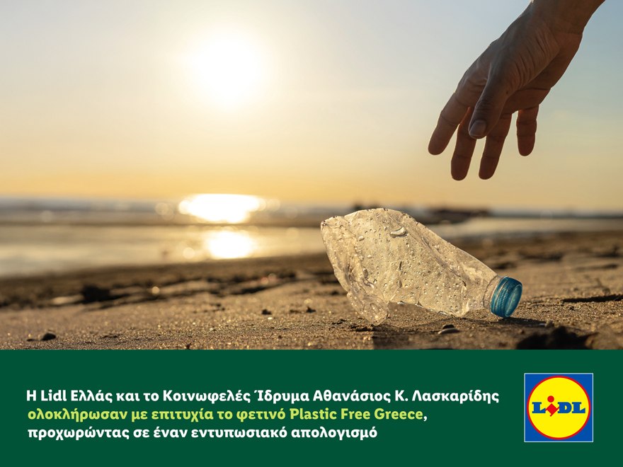Με αφοσίωση στην περιβαλλοντική προστασία, η Lidl Ελλάς ολοκλήρωσε με επιτυχία για 6η συνεχή χρονιά την πρωτοβουλία Plastic Free Greece, που υλοποιείται σε συνεργασία με το Κοινωφελές Ίδρυμα Αθανάσιος Κ. Λασκαρίδης, υπό την αιγίδα του Υπουργείου Τουρισμού και του Υπουργείου Περιβάλλοντος και Ενέργειας, στο πλαίσιο της εθνικής καμπάνιας «Ελλάδα Χωρίς Πλαστικά Μίας Χρήσης».