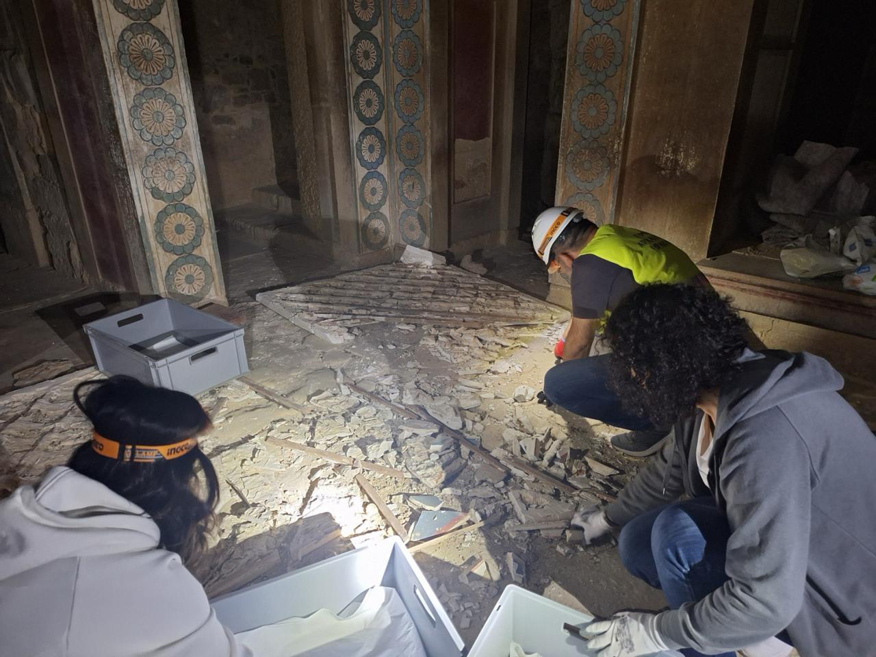 Η τοιχογραφία -κατασκευασμένη από γύψο- αποτελούνταν από τρία μέρη. Σύμφωνα με τις πρώτες εκτιμήσεις, τα δύο από αυτά αποκολλήθηκαν και έπεσαν, με αποτέλεσμα να υποστούν σοβαρές φθορές και να σπάσουν.