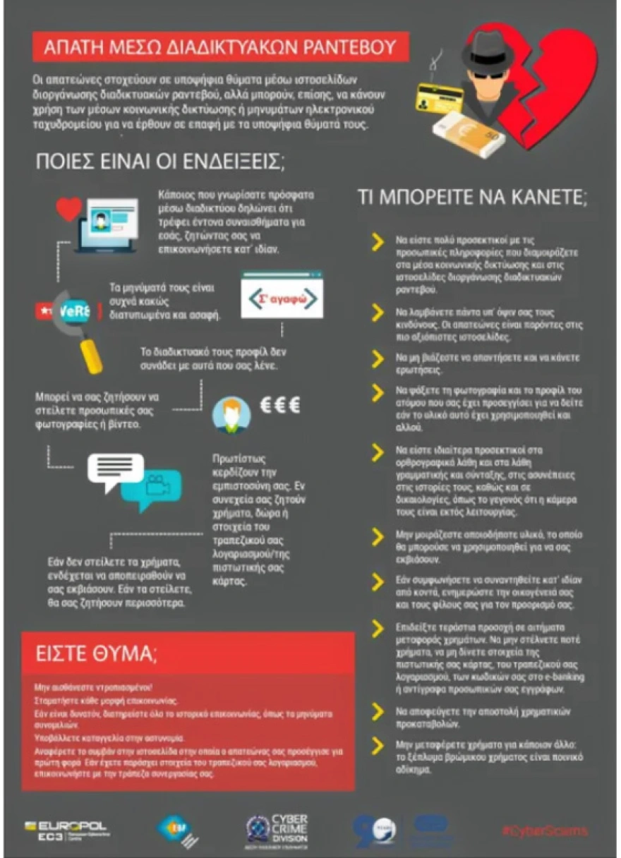 Η ΕΛ.ΑΣ σημειώνει πως οι απατεώνες εκμεταλλεύονται την ευαισθησία και την μοναξιά των ανθρώπων, καλώντας τους πολίτες να είναι ιδιαίτερα προσεχτικοί στις διαδικτυακές τους επαφές.