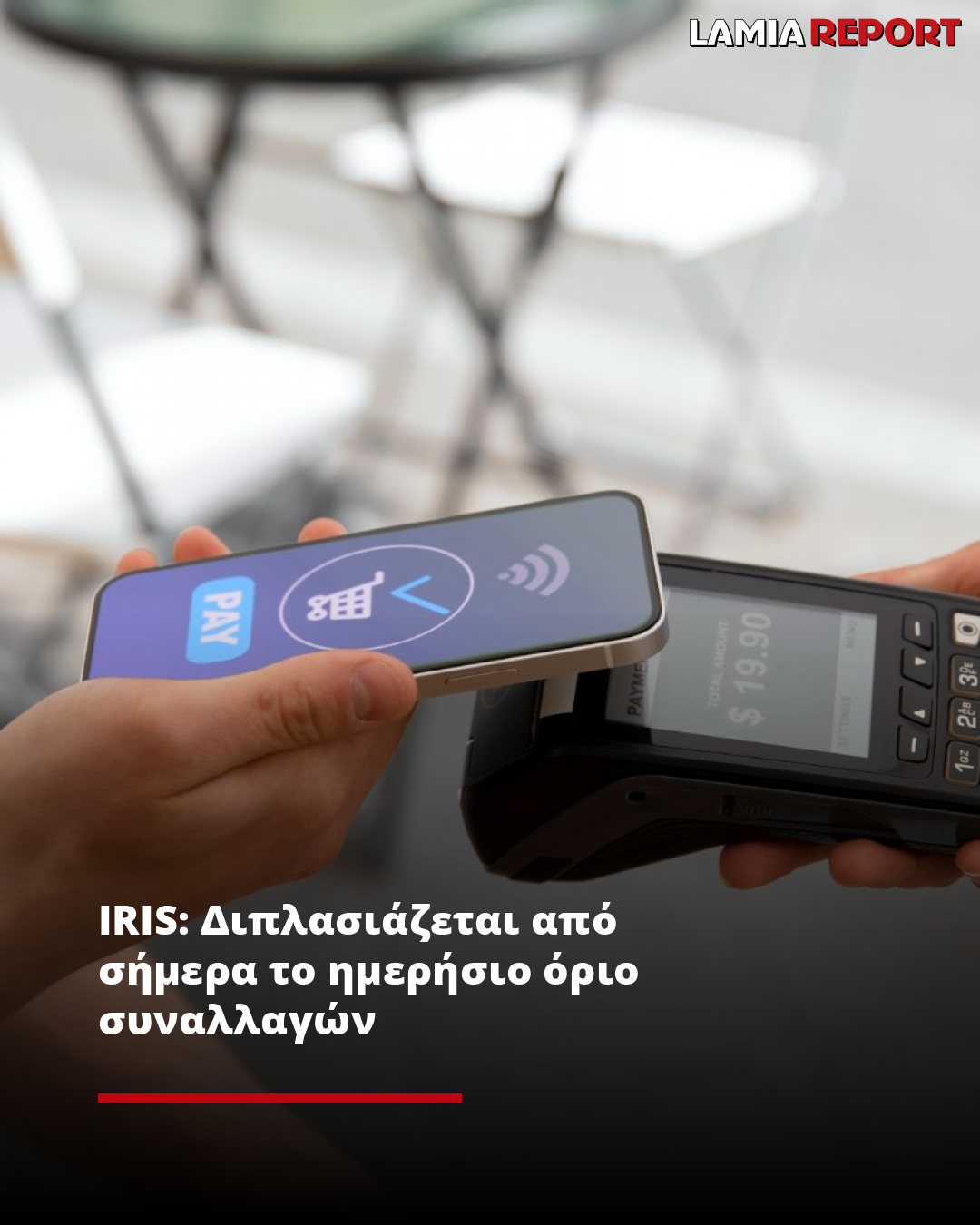 Από σήμερα διπλασιάζονται τα ημερήσια όρια μεταφοράς χρημάτων μεταξύ μεταξύ φυσικών προσώπων, αλλά και μεταξύ φυσικών προσώπων και ελεύθερων επαγγελματιών, μέσω IRIS, «λύνοντας» έτσι τα χέρια πολλών πολιτών που χρειάζεται να μεταφέρουν μεγαλύτερα ποσά από όσα προβλέπουν τα ισχύοντα όρια.