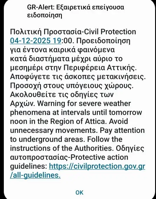 Ήχησε το 112 στην Αττική- Αποφύγετε τις άσκοπες μετακινήσεις