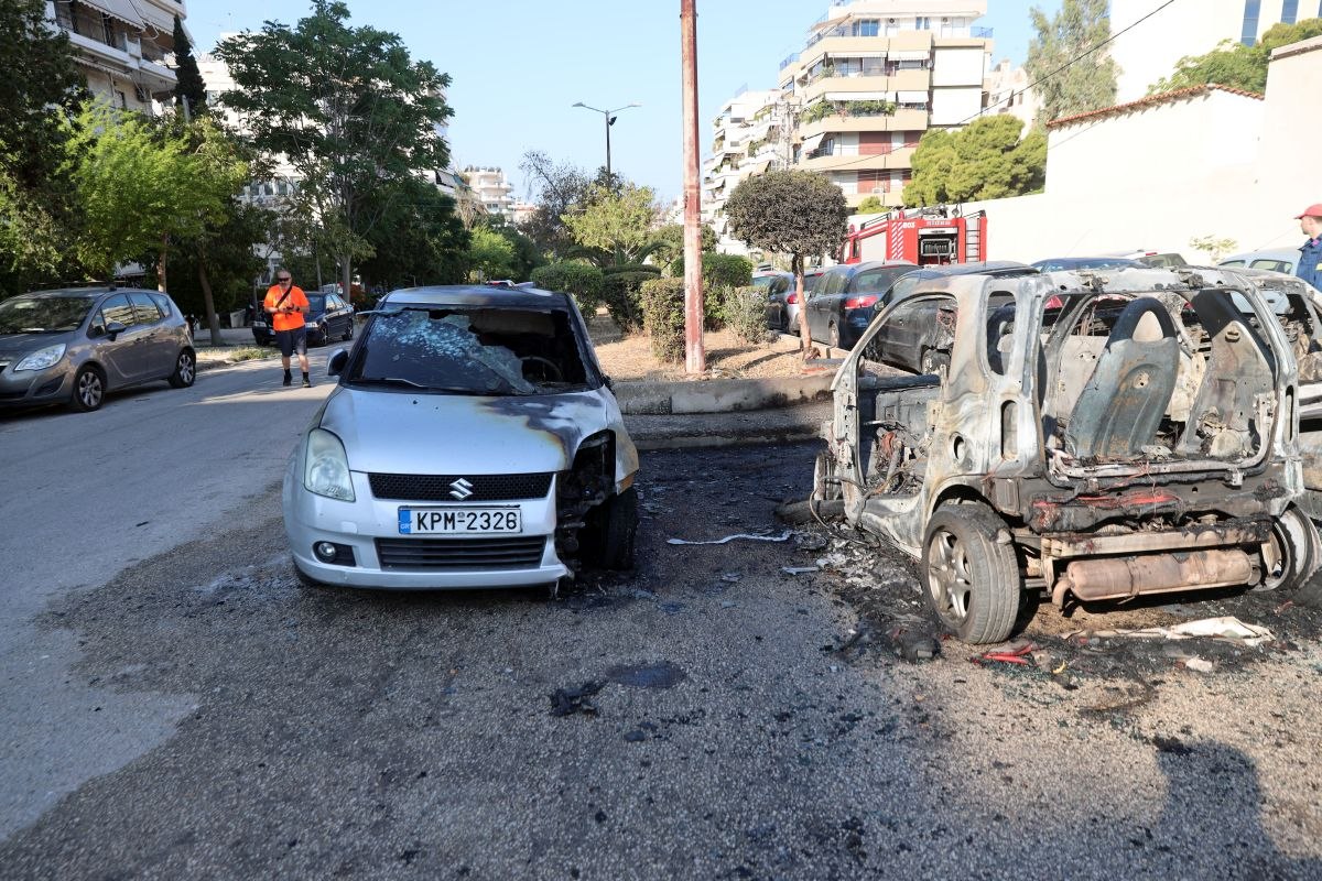 Κάηκαν πέντε αυτοκίνητα στη Νέα Σμύρνη - Δείτε βίντεο και φωτογραφίες
