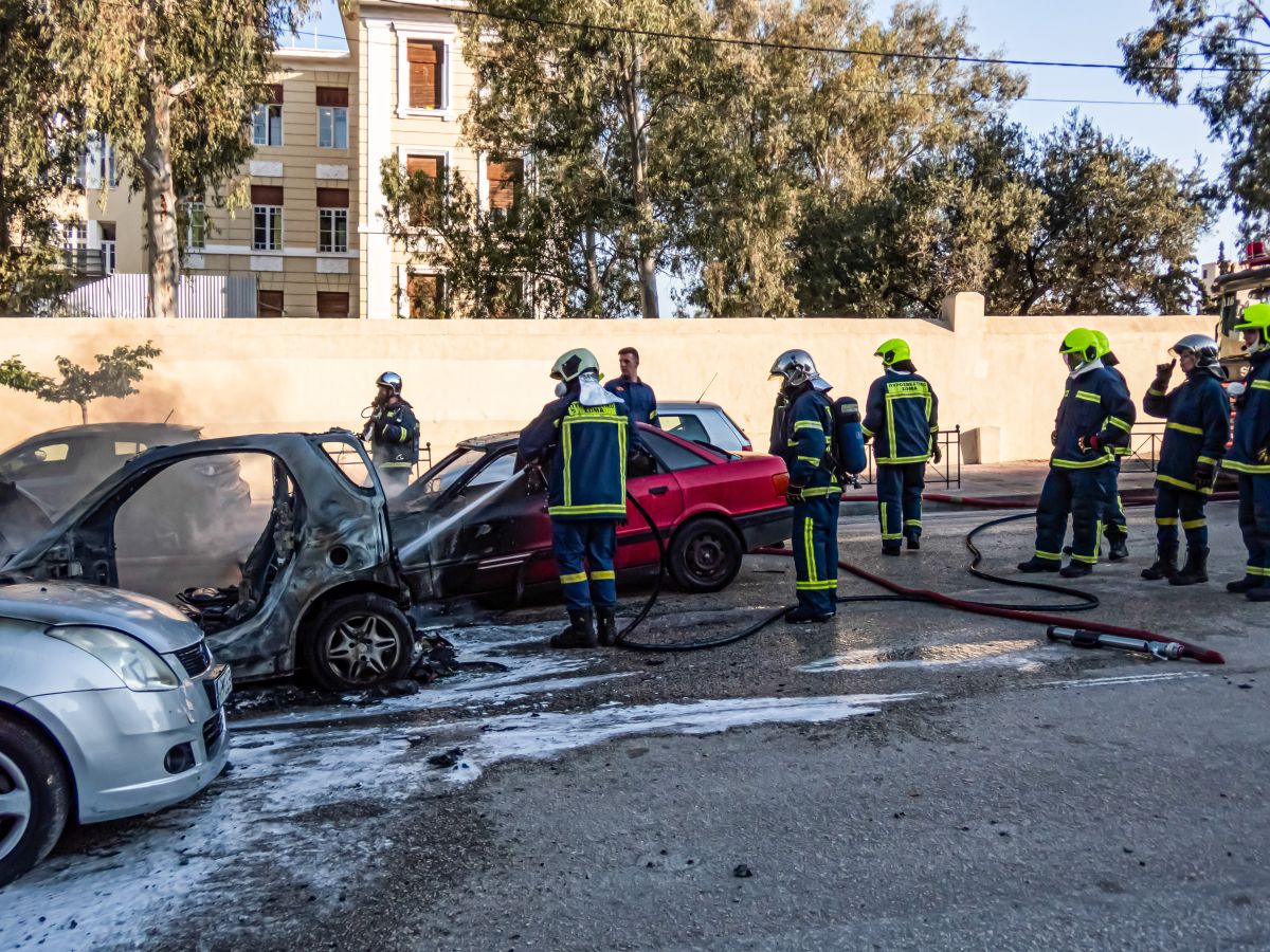 Συναγερμός σήμανε στην Πυροσβεστική το πρωί, καθώς σταθμευμένα οχήματα τυλίχθηκαν στις φλόγες στη Νέα Σμύρνη.