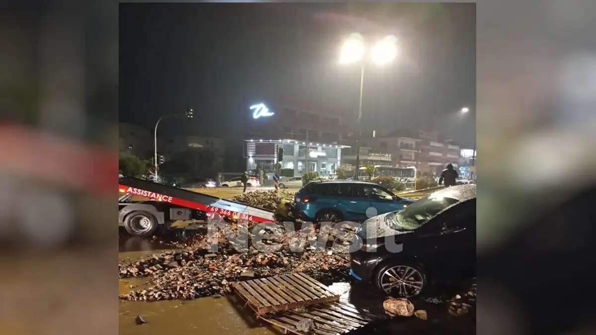 Τόνοι νερού και μεγάλη ποσότητα λάσπης έχουν καλύψει τους δρόμους και τα πεζοδρόμια, με αποτέλεσμα η κυκλοφορία των οχημάτων να μην είναι πλέον εφικτή στην περιοχή.