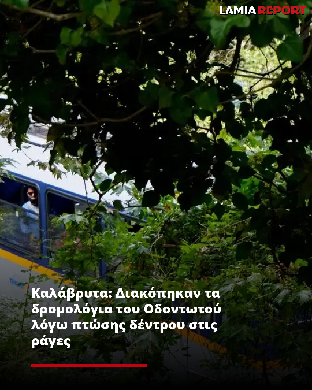 Στην ανακοίνωσή της η Hellenic Train αναφέρει: «Η Hellenic Train ενημερώνει το επιβατικό κοινό ότι, τα δρομολόγια των αμαξοστοιχιών 1330 και 1331 στη γραμμή Διακοπτό- Καλάβρυτα- Διακοπτό δεν θα πραγματοποιηθούν, λόγω πτώσης δέντρου επί της σιδηροδρομικής γραμμής και κατόπιν εντολής του Διαχειριστή Υποδομής. Η Hellenic Train ευχαριστεί το επιβατικό κοινό για την κατανόηση».