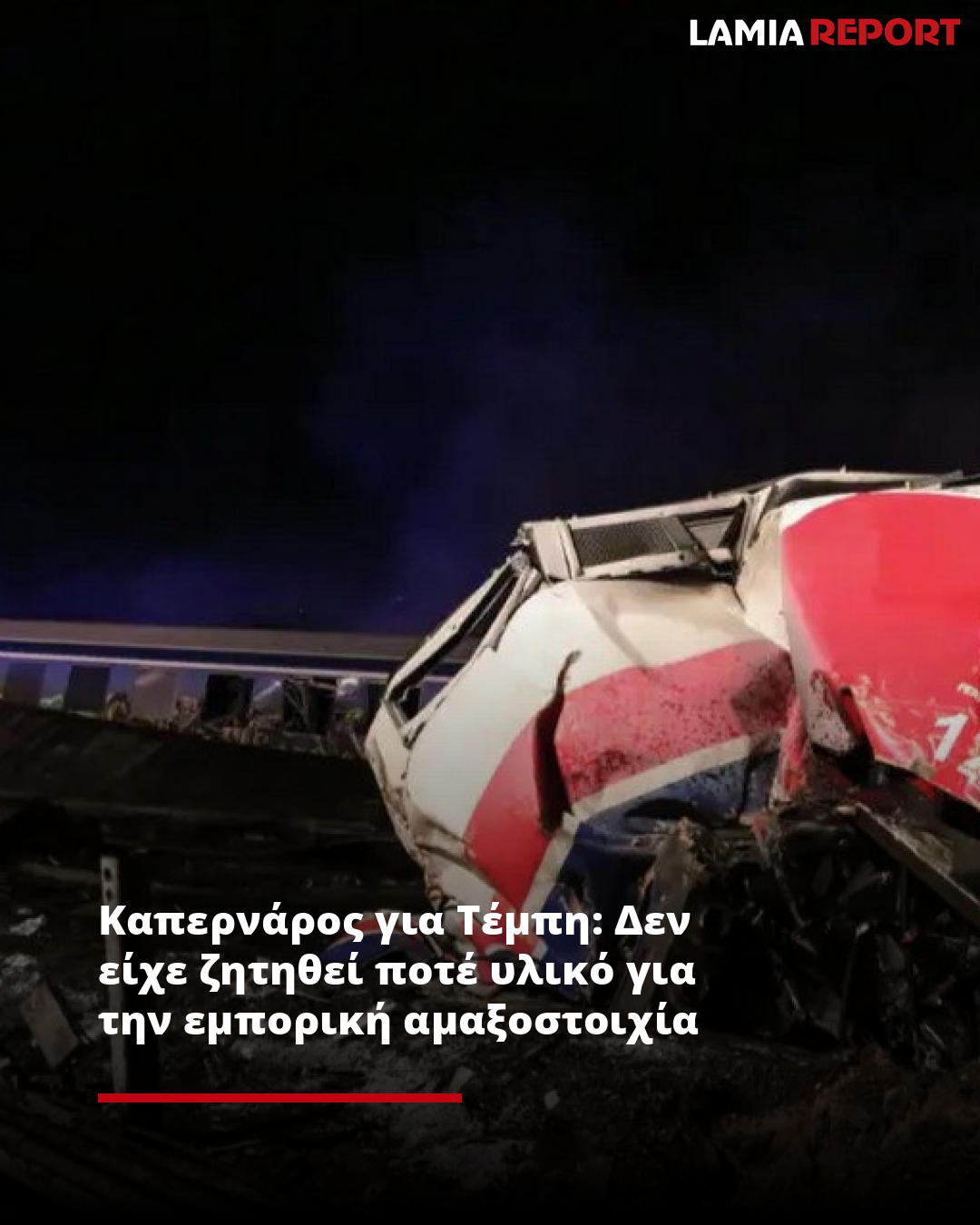 Καπερνάρος για Τέμπη: Δεν είχε ζητηθεί ποτέ υλικό για την εμπορική αμαξοστοιχία