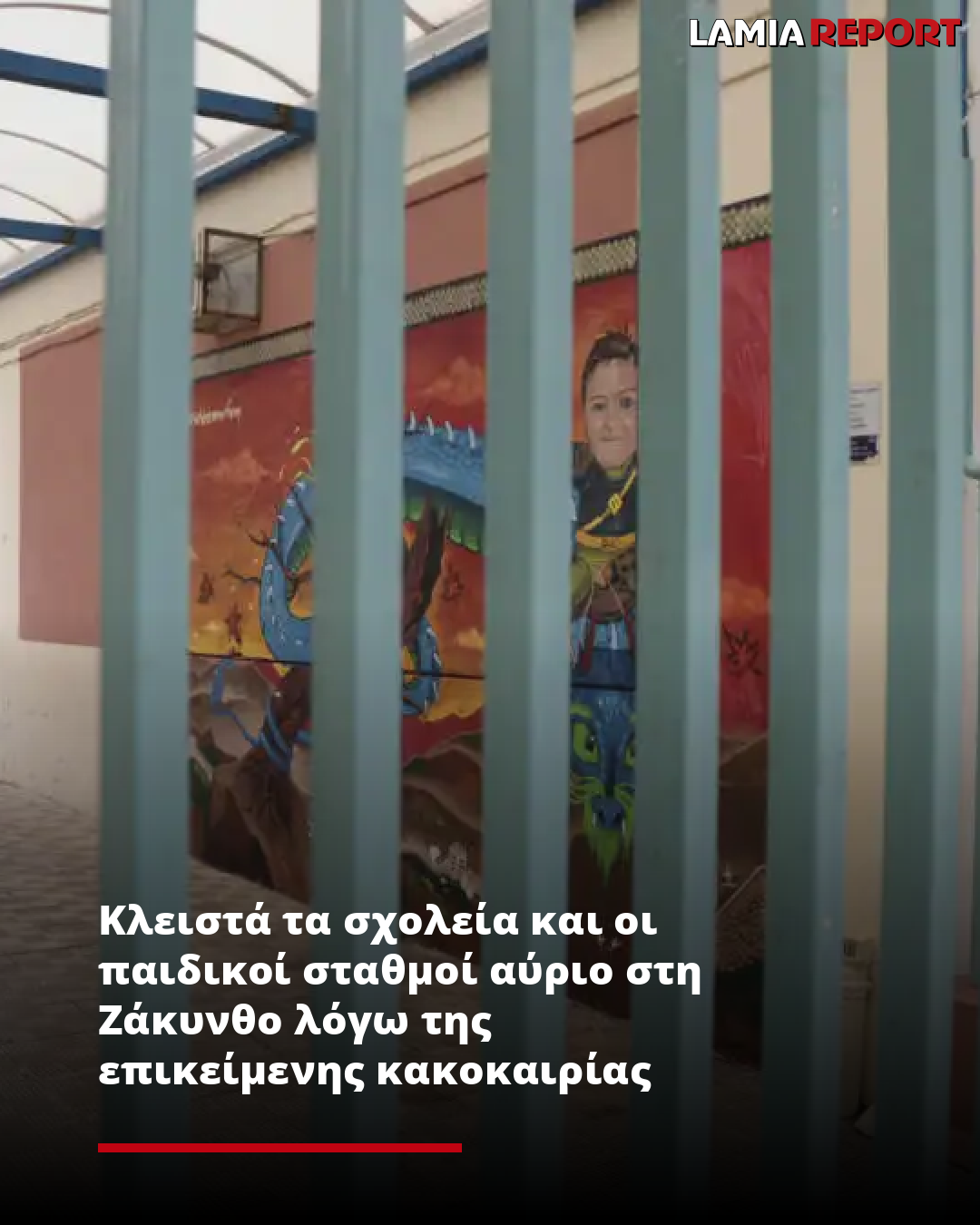 Κλειστά τα σχολεία και οι παιδικοί σταθμοί αύριο στη Ζάκυνθο λόγω της επικείμενης κακοκαιρίας