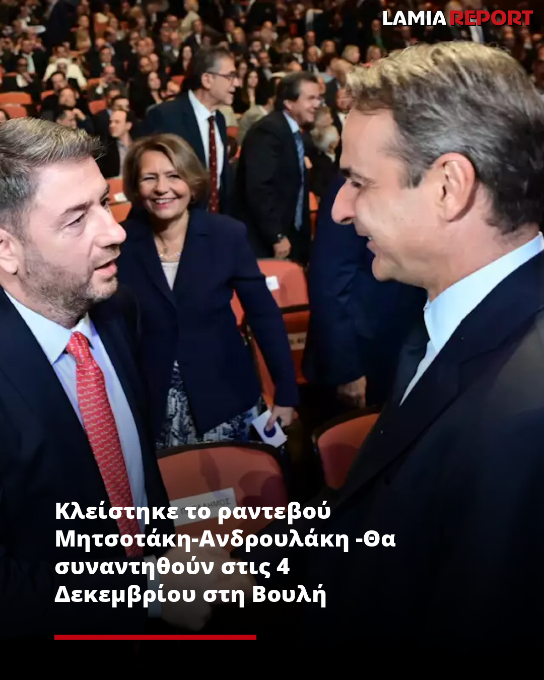 Η συνάντηση Μητσοτάκη-Ανδρουλάκη θα πραγματοποιηθεί την επόμενη Τετάρτη 4 Δεκεμβρίου στις 12:00 στο γραφείο του πρωθυπουργού στη Βουλή.