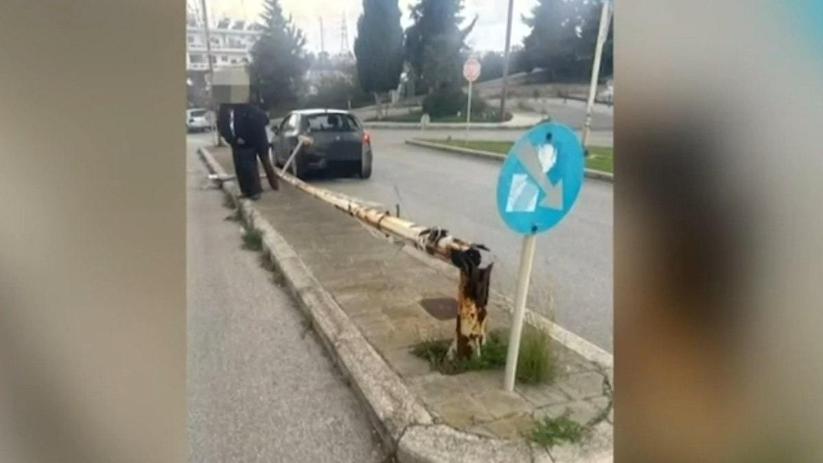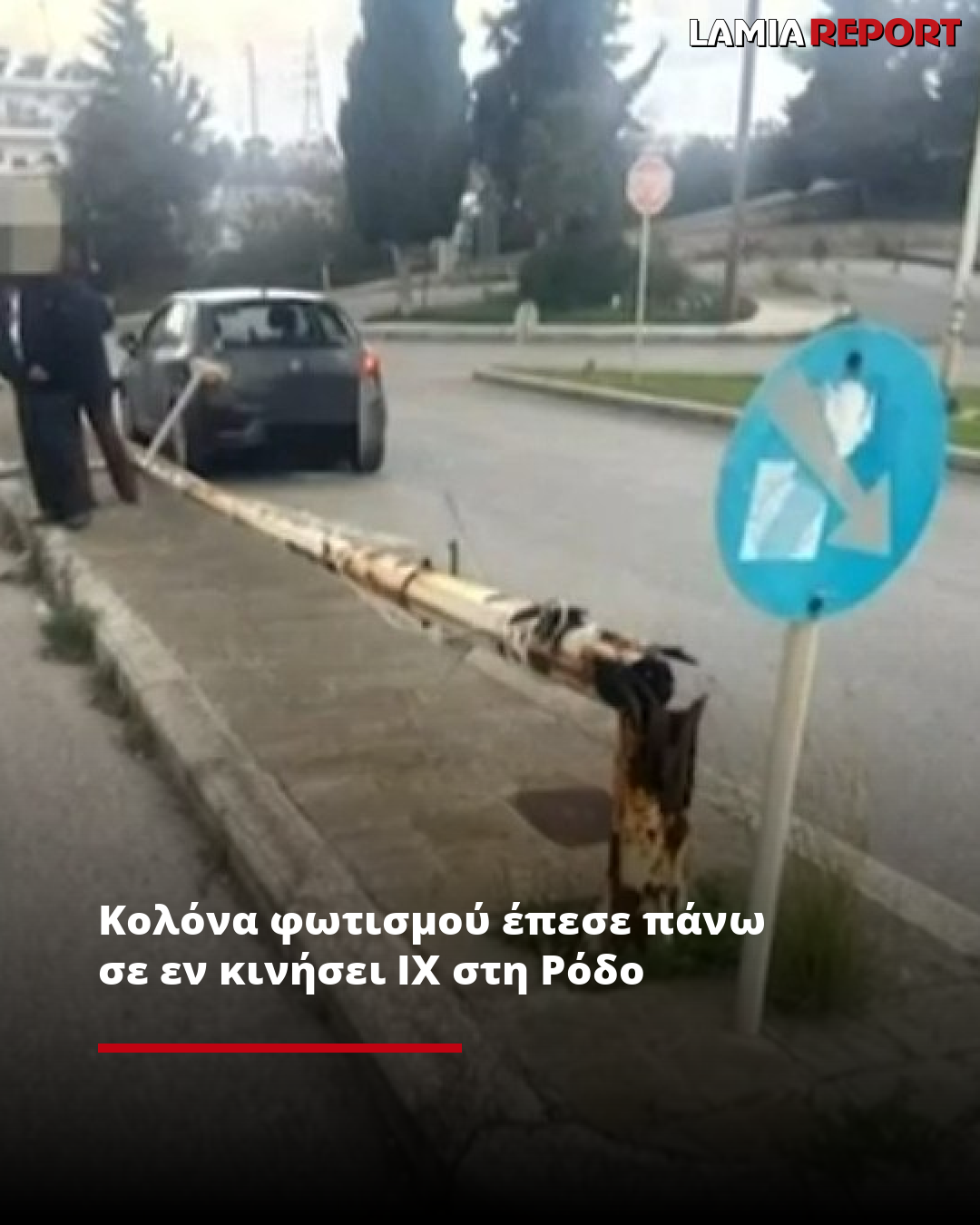 Το περιστατικό σημειώθηκε στην περιοχή του Ροδινιού με τη μεταλλική κολώνα να καταλήγει σε ΙΧ, σπάζοντας το πίσω τζάμι του αυτοκινήτου σύμφωνα με το rodiaki.gr.