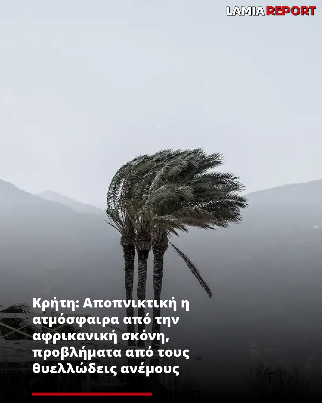 Μπορεί να μην υπάρχουν προβλήματα από χαλάζι ή καταιγίδες όπως σε άλλες περιοχές, όμως οι ισχυροί άνεμοι στην Κρήτη σε συνδυασμό με τη αφρικανική σκόνη, προκαλούν προβλήματα στο νησί.