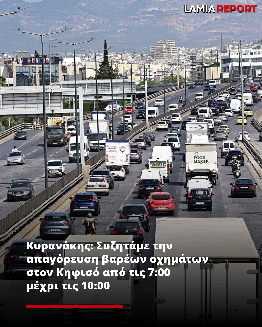 Στην αποκάλυψη ότι έχει ξεκινήσει συζήτηση για απαγόρευση βαρέων οχημάτων από τις 7 έως τις 10 το πρωί στον Κηφισό, προχώρησε ο Κωνσταντίνος Κυρανάκης.
