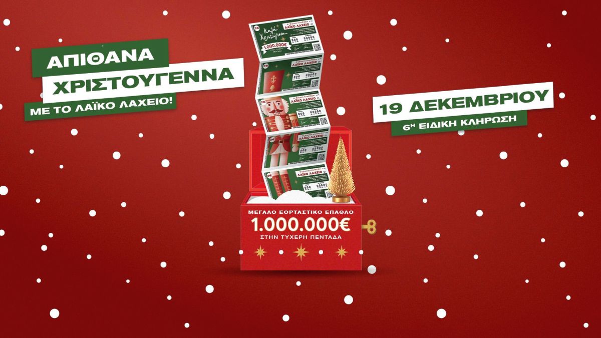 Λαϊκό Λαχείο: Αντίστροφη μέτρηση για την ειδική κλήρωση της Παρασκευής 19 Δεκεμβρίου - Χριστουγεννιάτικο έπαθλο μέχρι και 1.000.000 ευρώ