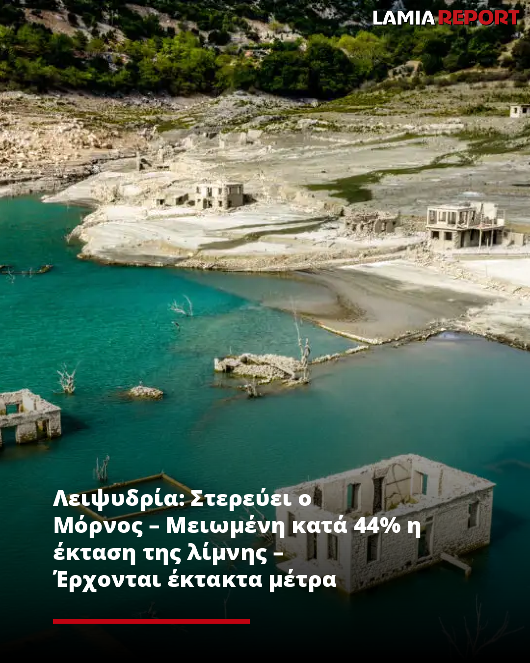 Μειωμένη κατά 44% η έκταση της λίμνης του Μόρνου