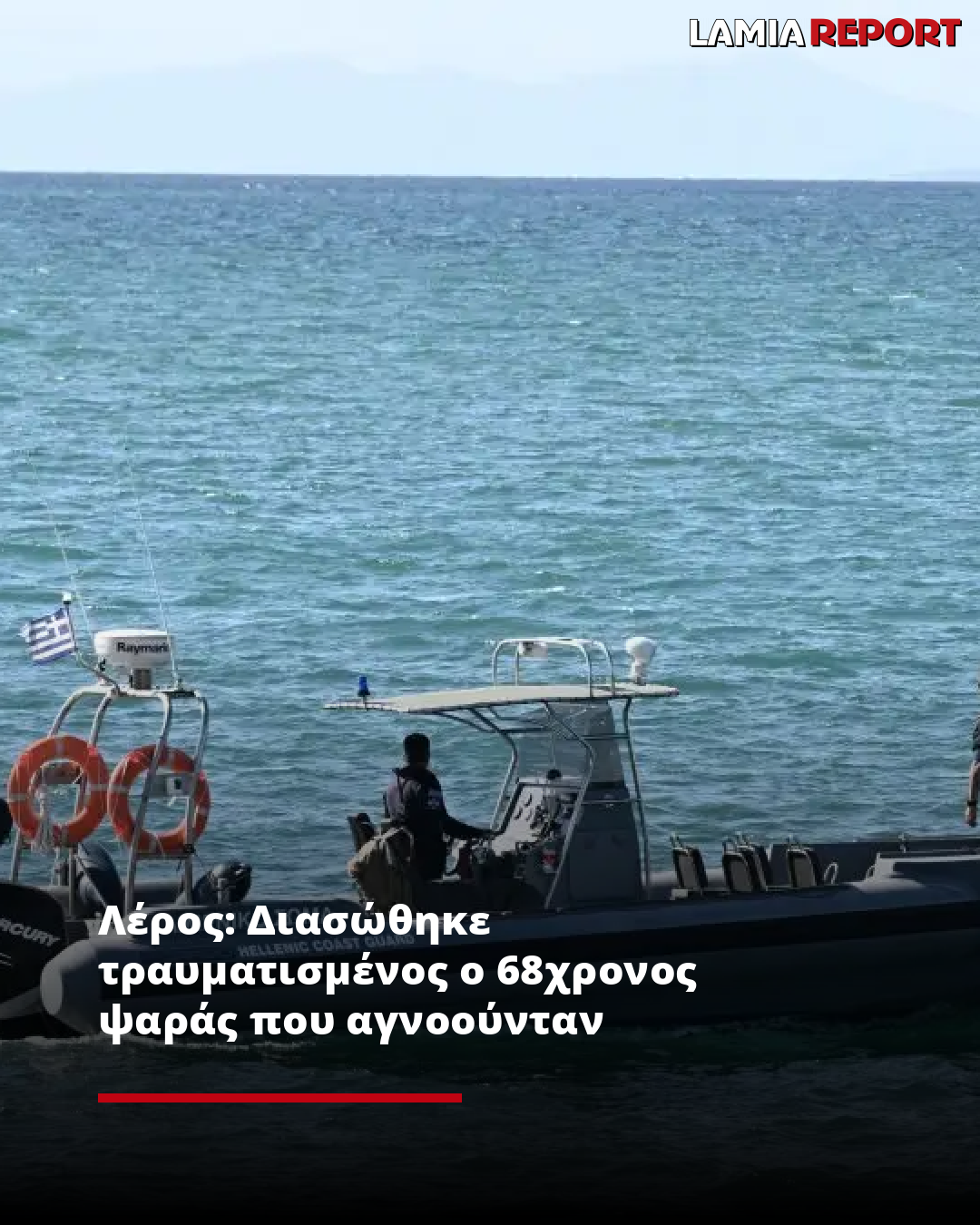 Ο 68χρονος ψαράς διασώθηκε από το Λιμενικό και διακομίστηκε για εξετάσεις στο Κέντρο Υγείας στη Λέρο.