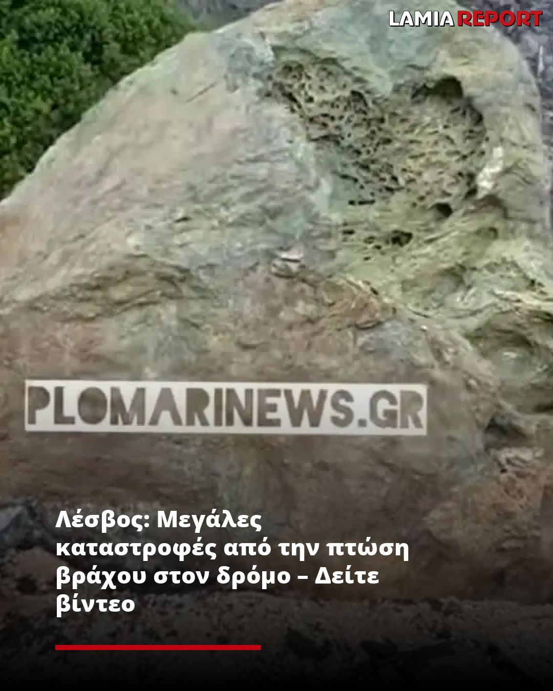 Λέσβος: Μεγάλες καταστροφές από την πτώση βράχου στον δρόμο – Δείτε βίντεο