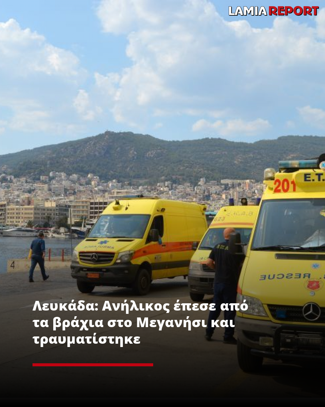 Διακομίστηκε με σκάφος του Δήμου, συνοδεία ιατρού, στο Νυδρί και από εκεί μεταφέρθηκε με ασθενοφόρο όχημα του ΕΚΑΒ στο Γενικό Νοσοκομείο Λευκάδας.