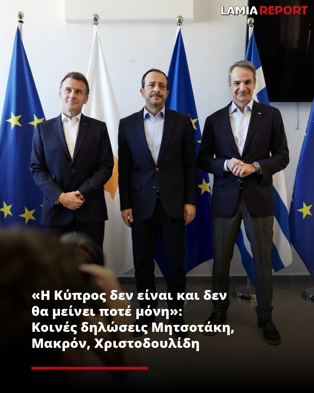 «Η Κύπρος δεν είναι και δεν θα μείνει ποτέ μόνη»: Κοινές δηλώσεις Μητσοτάκη, Μακρόν, Χριστοδουλίδη