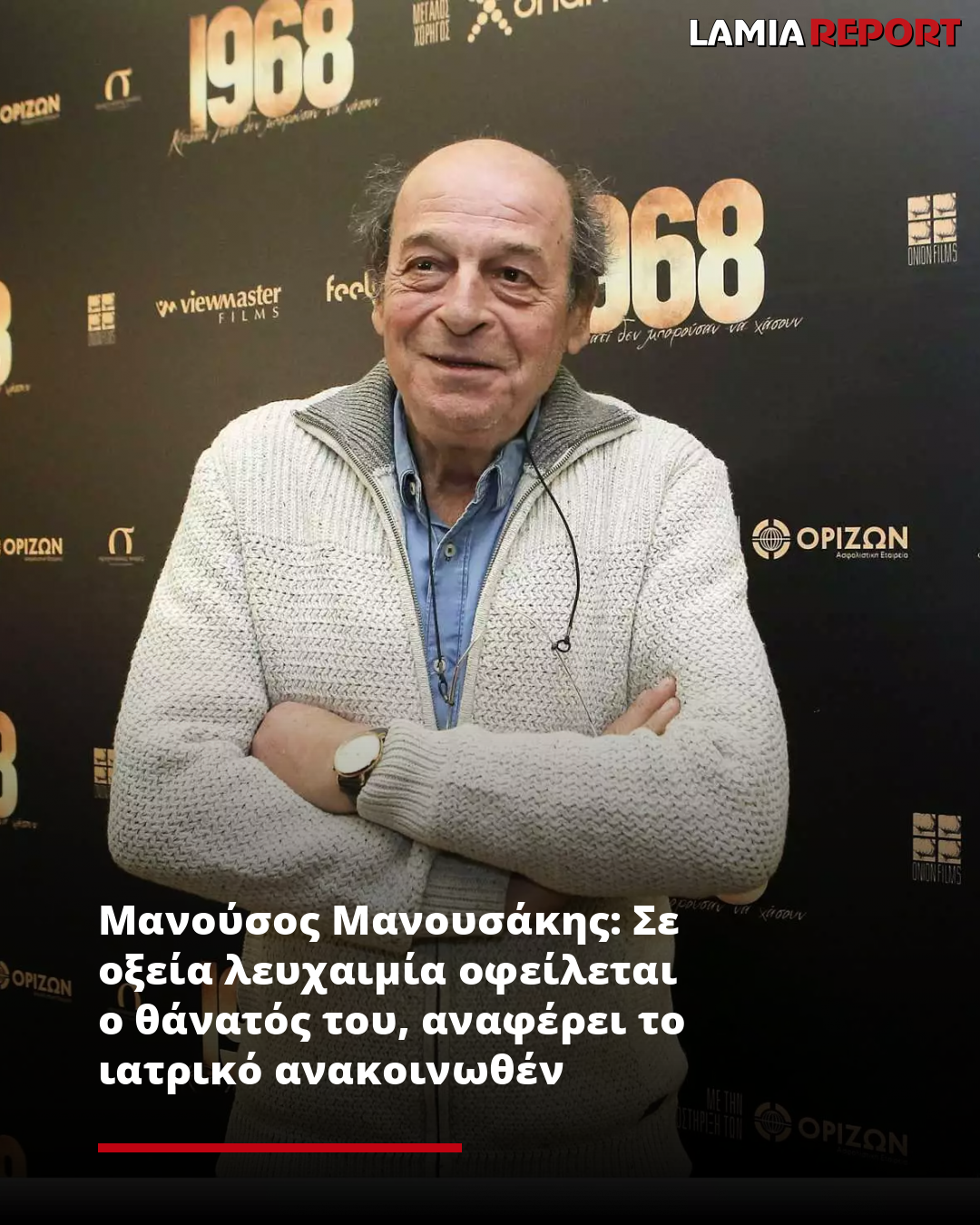 Σε οξεία μυελογενή λευχαιμία, η οποία διαγνώστηκε πρόσφατα, οφείλεται ο θάνατος του σπουδαίου σκηνοθέτη Μανούσου Μανουσάκη, σύμφωνα με το ιατρικό ανακοινωθέν.