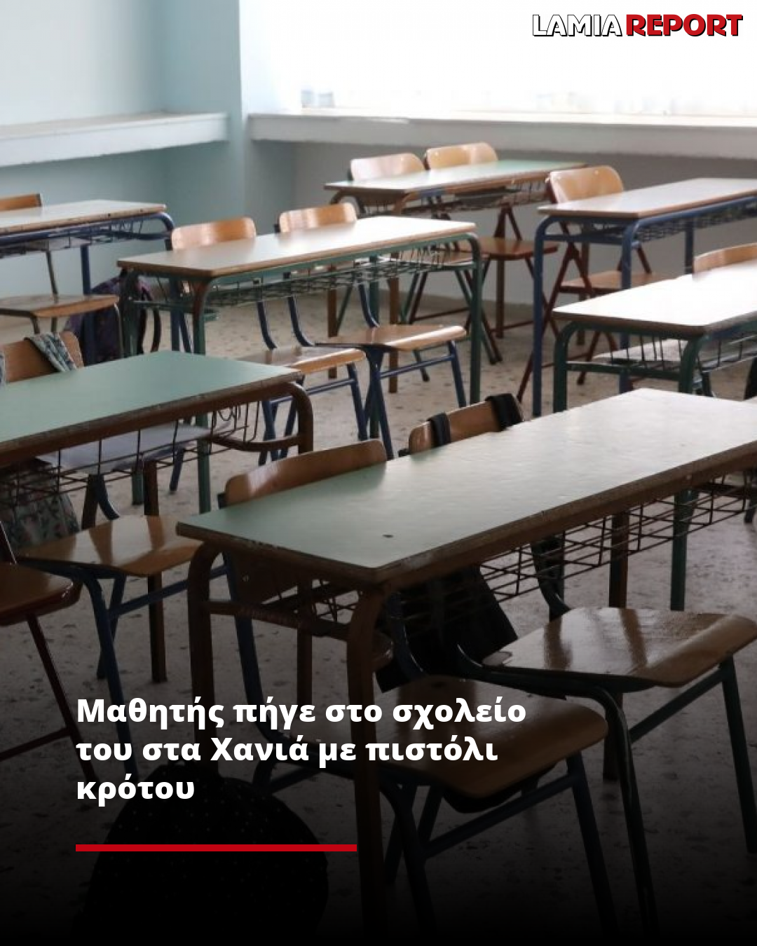 Το περιστατικό, σύμφωνα με την ΕΡΤ Χανίων, σημειώθηκε την περασμένη Πέμπτη, όταν ο 14χρονος μαθητής έβγαλε το όπλο από την τσάντα του, το τοποθέτησε στο θρανίο του και άρχισε να το εξετάζει προσεκτικά.
