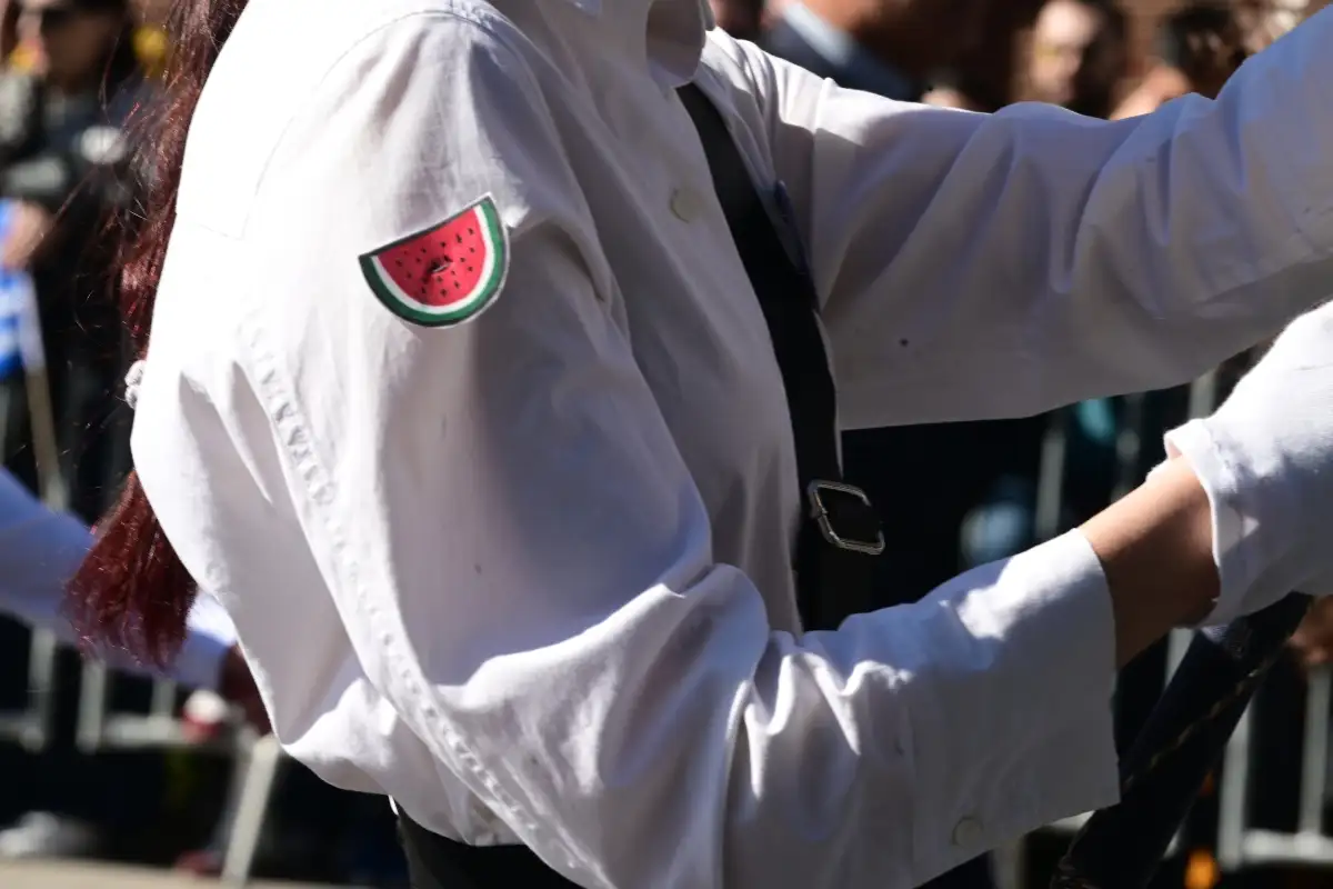 Η νεαρή κοπέλα, όπως αναφέρει το newsit.gr, είχε καρφιτσωμένο στο δεξί της μπράτσο, ένα καρπούζι που αποτελεί ένα μυστικό μήνυμα για τη στήριξη στην Παλαιστίνη.