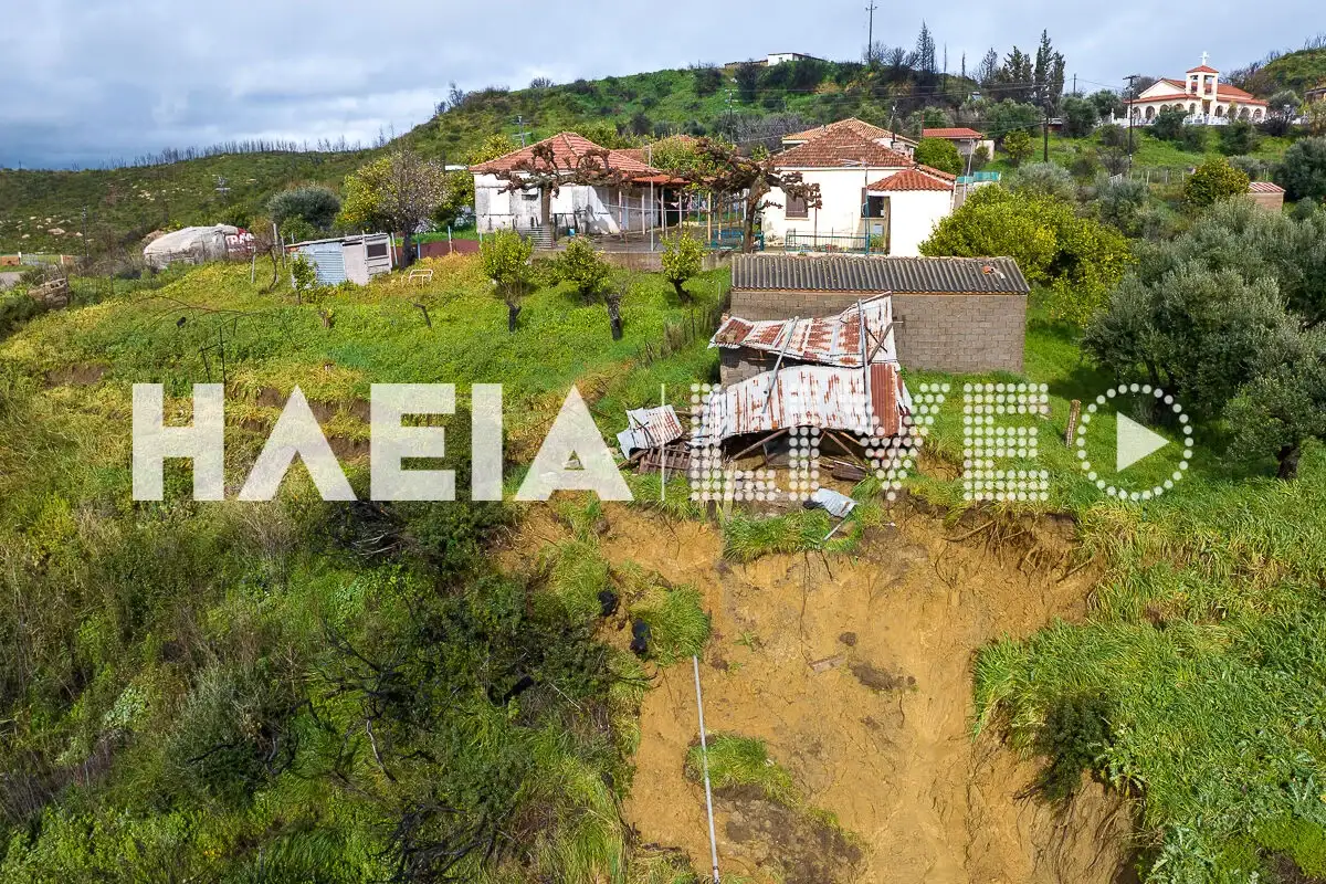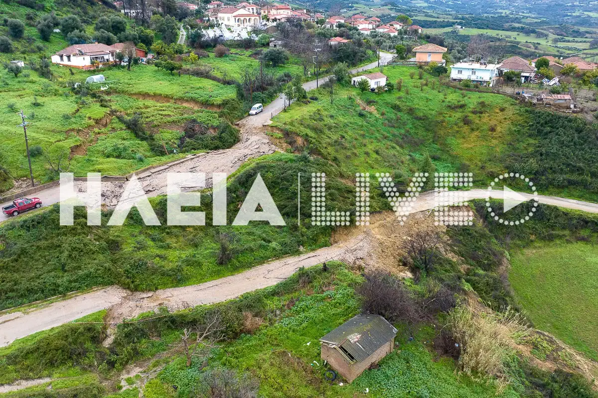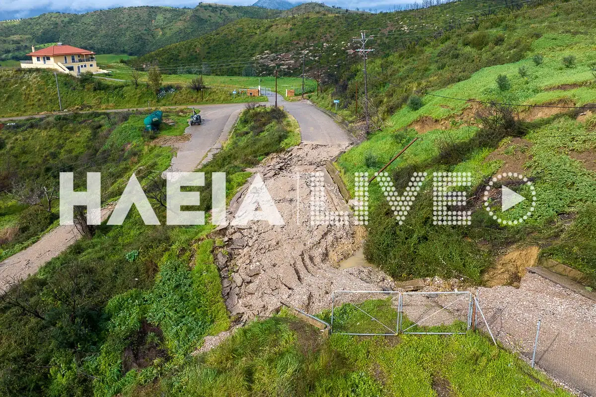 Τα ξημερώματα της Τρίτης (17.02.2026) μια μεγάλη κατολίσθηση έκλεισε τη δεύτερη είσοδο – έξοδο του χωριού, που πλέον είναι αποκομμένο οδικώς από τον υπόλοιπο νομό της Ηλείας. Οι εικόνες πάνω από το Μαζαράκι αποκαλύπτουν πως η αρχική κατολίσθηση «επεκτάθηκε» καταστρέφοντας και άλλο τμήμα του δρόμου, μετά τις καταιγίδες.