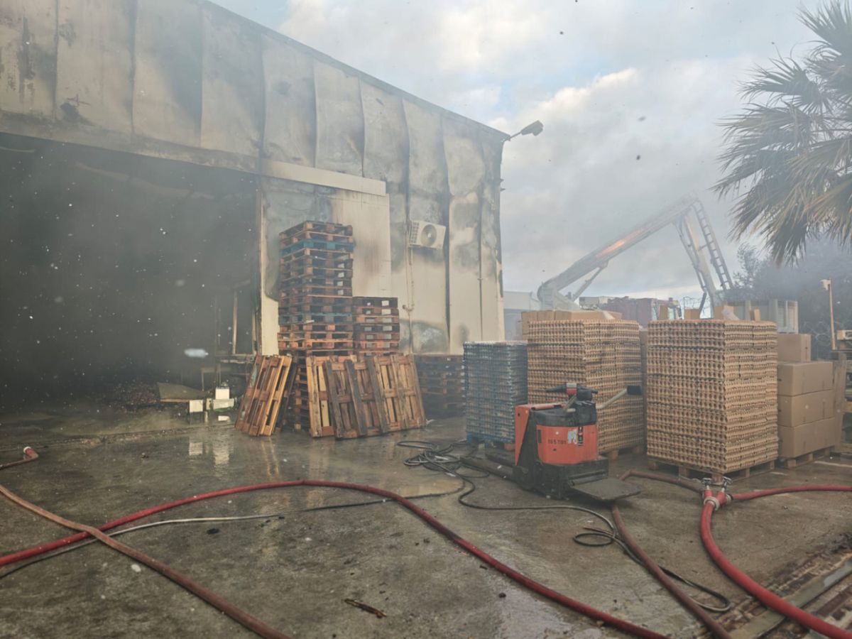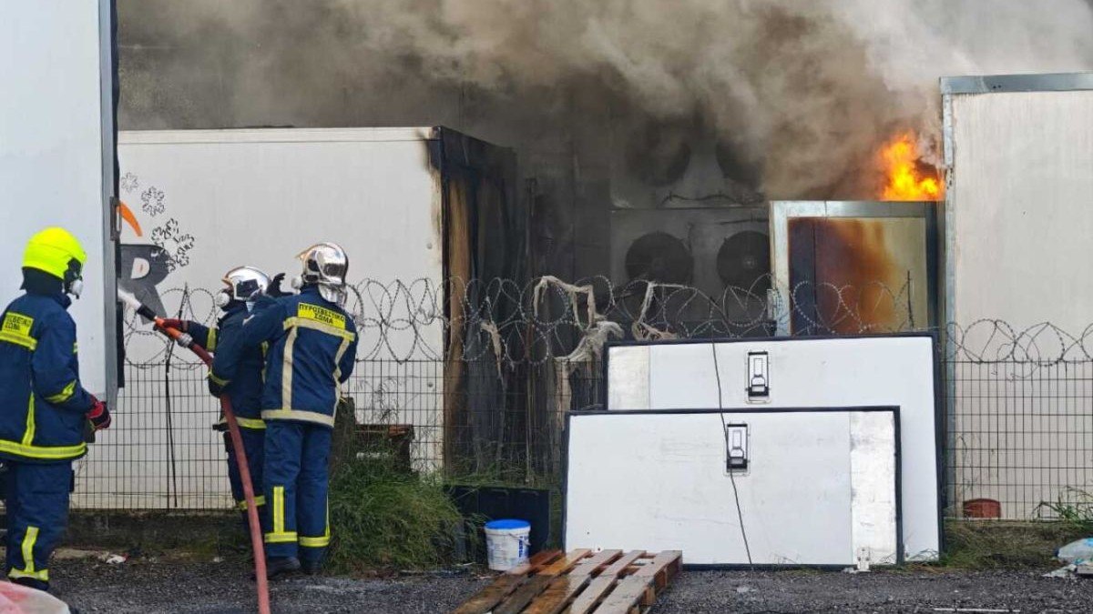 Η φωτιά ξέσπασε λίγο μετά τις 02:00 το πρωί, σε δύο αποθήκες εταιρείας, με τις φλόγες να έχουν κάψει το εσωτερικό τους.