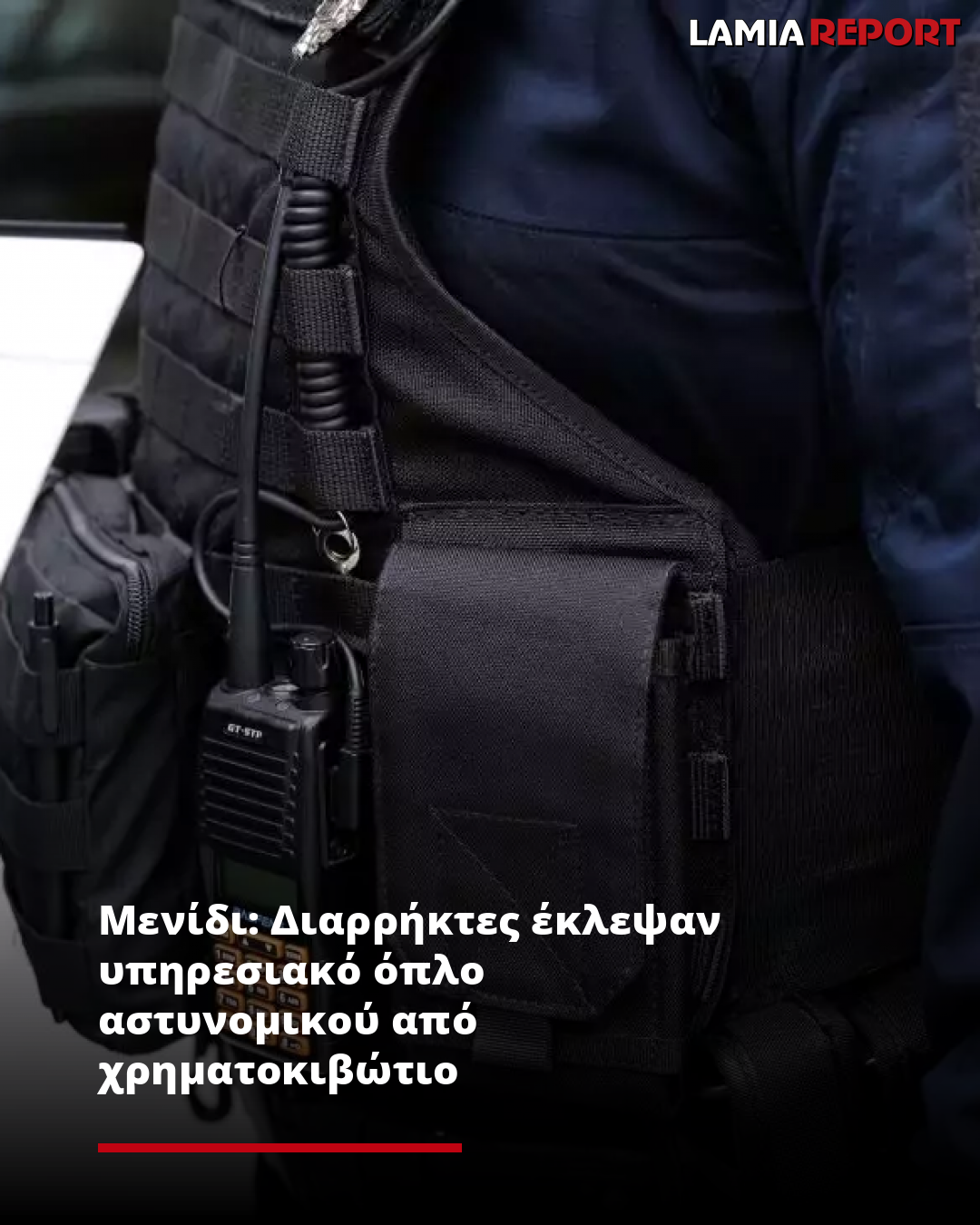 Οι ληστές, μετά από προσπάθεια κατάφεραν να παραβιάσουν την κεντρική πόρτα του σπιτιού την περιοχή του Μενιδίου και αφού μπήκαν μέσα, άρχισαν να ψάχνουν για χρήματα και αντικείμενα αξίας. Κατά την διάρκεια της διάρρηξης οι δράστες βρήκαν και πήραν το υπηρεσιακό όπλο του αστυνομικού.