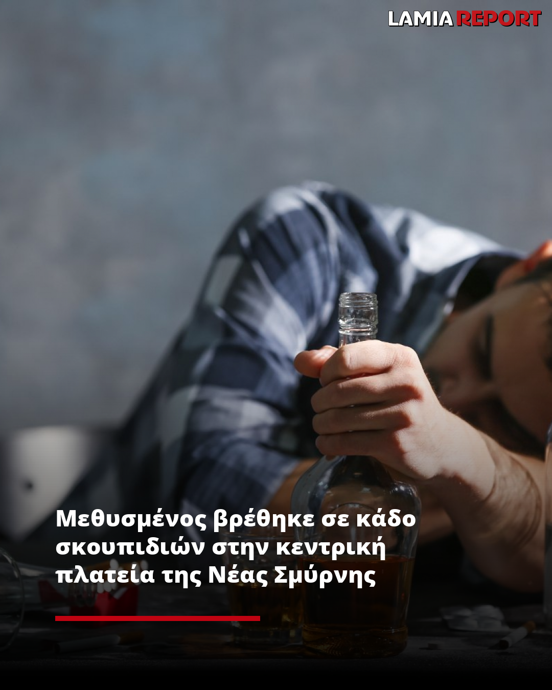 Μεθυσμένος βρέθηκε σε κάδο σκουπιδιών στην κεντρική πλατεία της Νέας Σμύρνης