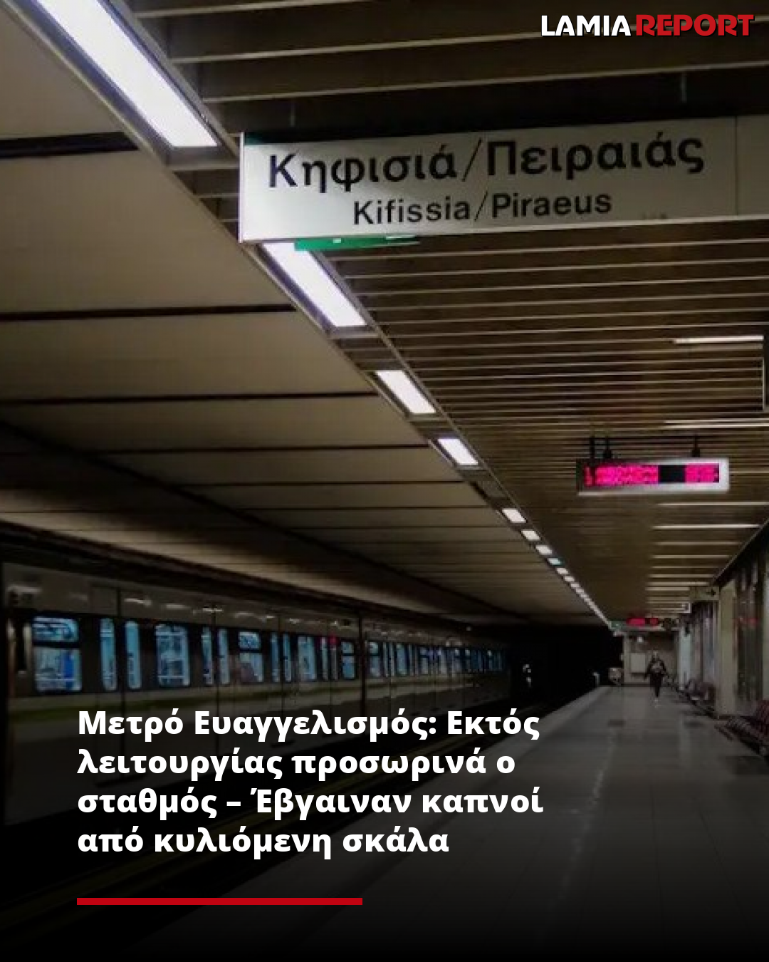 Σύμφωνα με την ενημέρωση της εταιρείες, ο λόγος που ο σταθμός του Μετρό Ευαγγελισμός τέθηκε προσωρινά εκτός λειτουργίας ,είναι μια τεχνική βλάβη που παρουσιάστηκε σε κυλιόμενη σκάλα, η οποία ως αποτέλεσμα είχε να βγουν καπνοί.