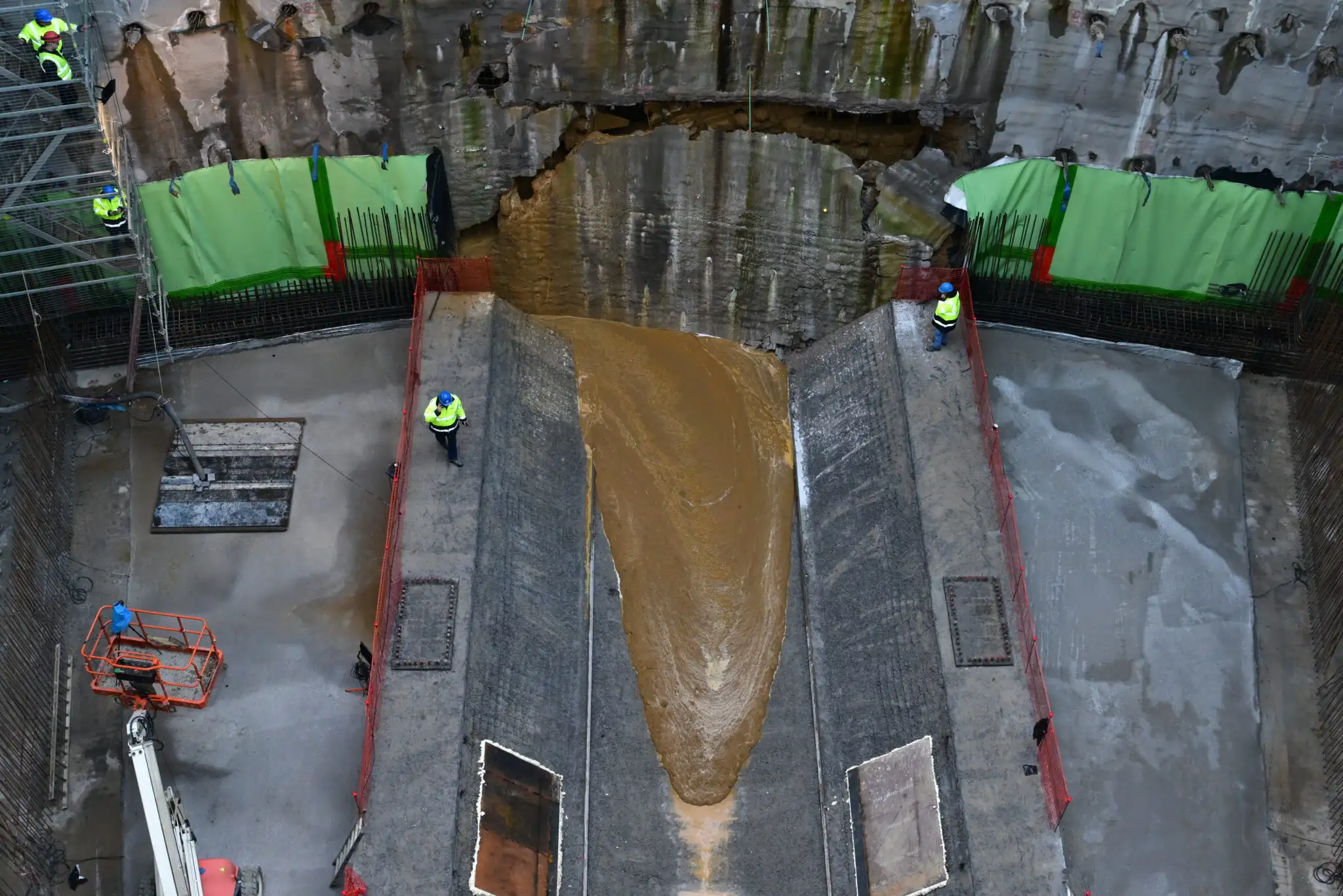 Μάλιστα, η διάνοιξη της σήραγγας, που μεταδίδεται ζωντανά, αποτελεί σημαντικό γεγονός για την πρόοδο του έργου της Γραμμής 4. Μόλις ο μετροπόντικας εμφανίστηκε στον Ευαγγελισμό όσοι βρίσκονταν στο σημείο ξέσπασαν σε χειροκροτήματα, ενώ ακούστηκε το διάσημο τραγούδι των Doors «Break on through».