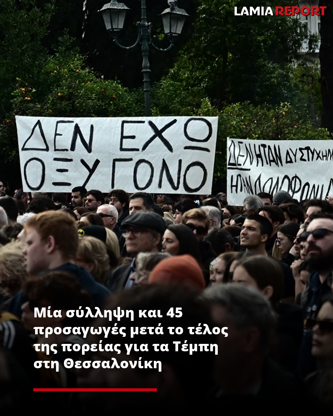 Στην προσαγωγή 45 ατόμων και σε μία σύλληψη για κατοχή μολότοφ προχώρησαν οι αστυνομικές αρχές μετά το τέλος της ογκώδους πορείας για τα θύματα των Τεμπών στη Θεσσαλονίκη.