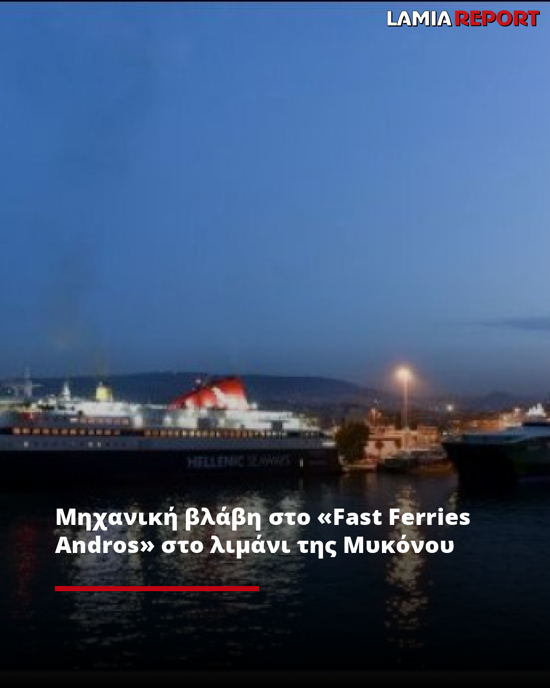 Μηχανική βλάβη παρουσίασε το επιβατηγό-οχηματαγωγό πλοίο «Fast Ferries Andros» κατά τη διάρκεια της παραμονής του στο λιμάνι της Μυκόνου, την ώρα που επρόκειτο να εκτελέσει το προγραμματισμένο δρομολόγιό του προς Τήνο, Σύρο και Πειραιά.