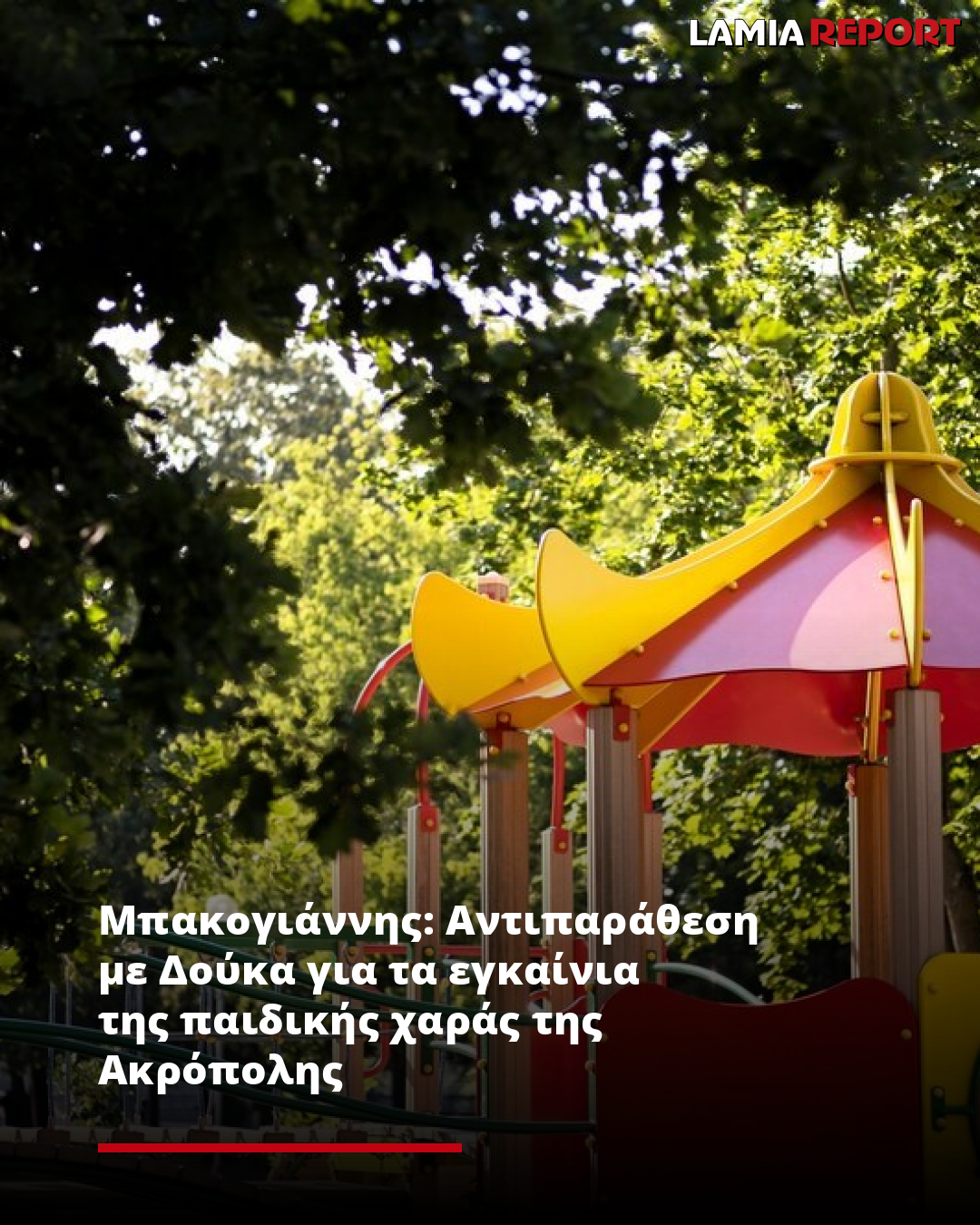 Εγκαίνια «υπερπαραγωγή» οργανώνονται από τη Δημοτική Αρχή για την Παιδική χαρά της Ακρόπολης, αναφέρει σε ανακοίνωσή της η δημοτική παράταξη «Αθήνα ψηλά» με επικεφαλής στον πρώην δήμαρχο Κώστα Μπακογιάννη.