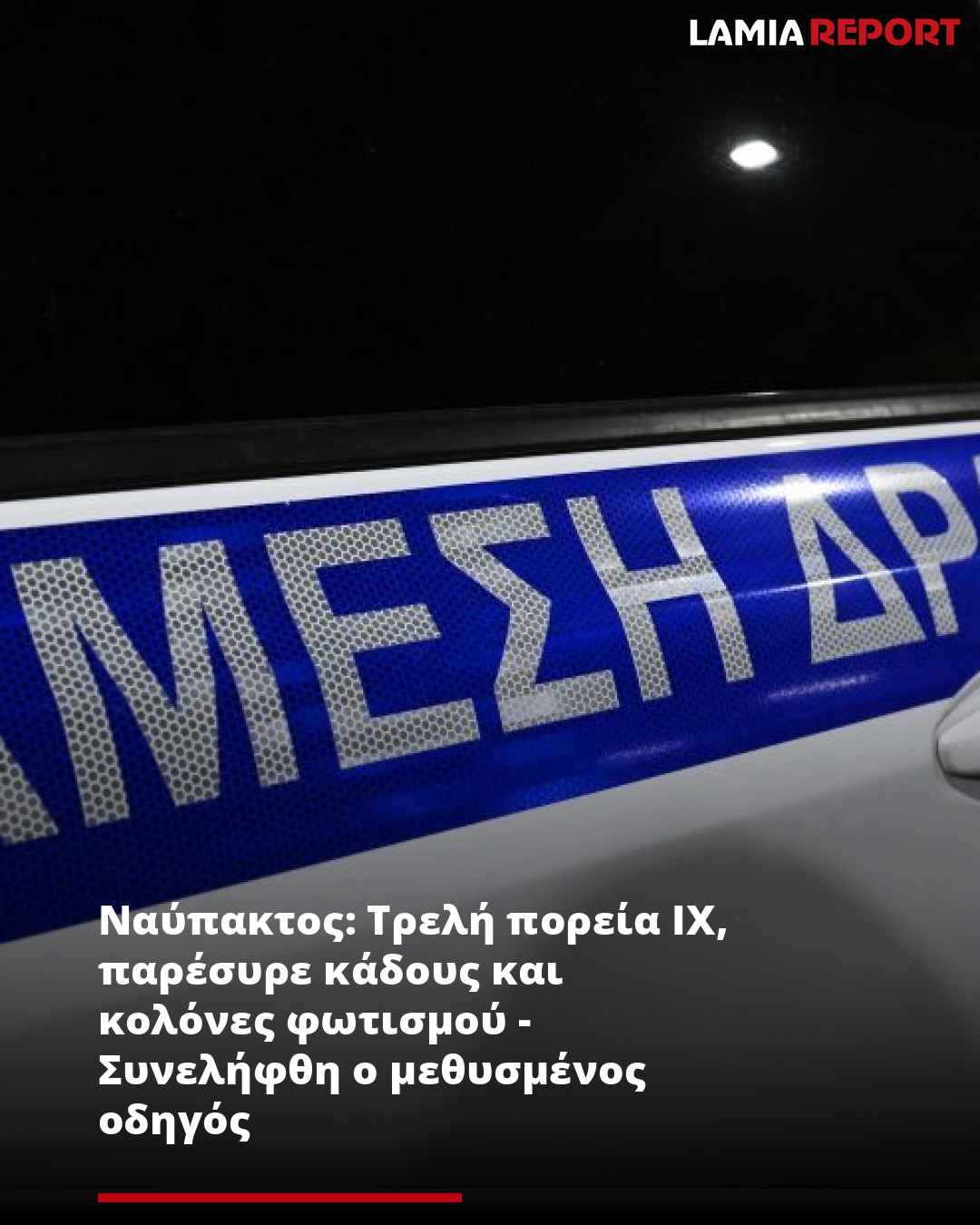 Ναύπακτος: Τρελή πορεία ΙΧ, παρέσυρε κάδους και κολόνες φωτισμού - Συνελήφθη ο μεθυσμένος οδηγός