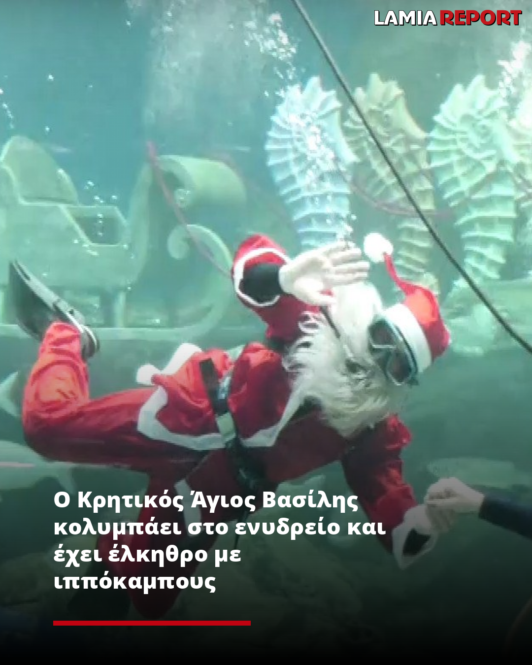 Ο Κρητικός Άγιος Βασίλης κολυμπάει στο ενυδρείο και έχει έλκηθρο με ιππόκαμπους
