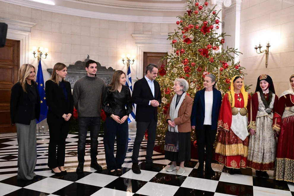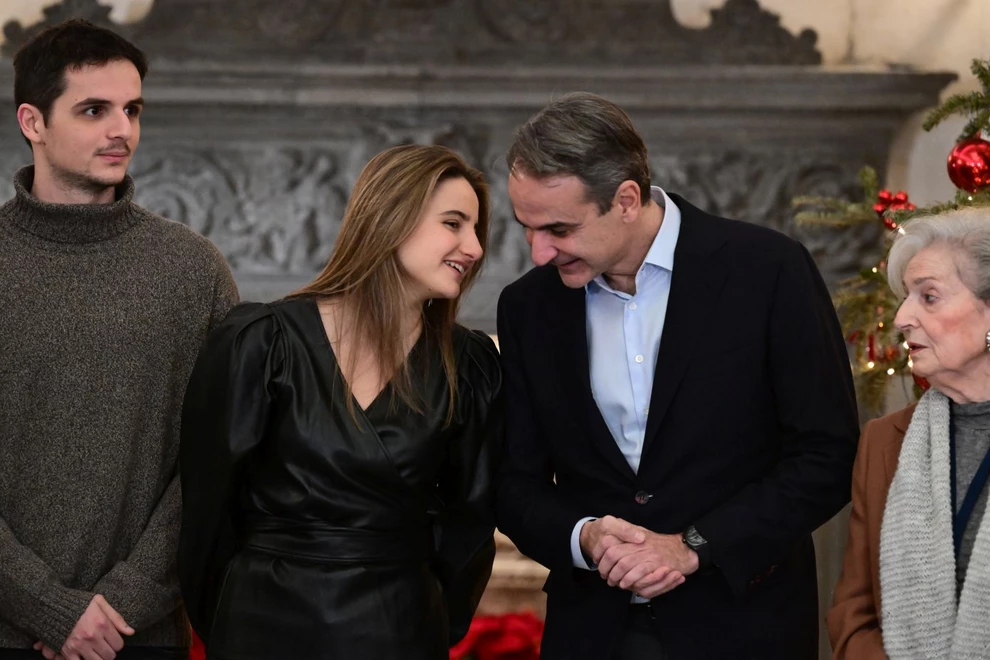 Κάλαντα και ευχές άκουσε ο πρωθυπουργός, Κυριάκος Μητσοτάκης, στο Μέγαρο Μαξίμου μαζί με την οικογένειά του. Συγκεκριμένα, μαζί του ήταν η σύζυγός του Μαρέβα και τα παιδιά τους Σοφία, Κωνσταντίνος και Δάφνη.
