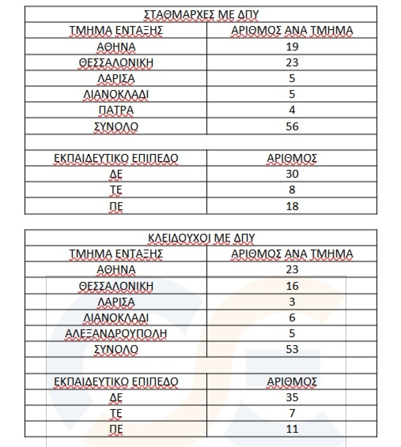Μάλιστα το 40% πρόκειται για αποφοίτους ΤΕ & ΠΕ όπως φαίνεται και στους παρακάτω πίνακες, αν και τα προσόντα που απαιτούνται είναι για ΔΕ.