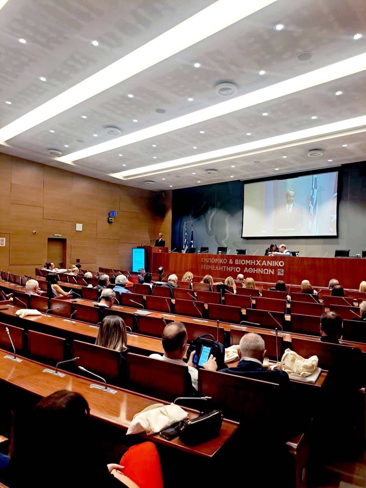 Κατά τη διάρκεια του χαιρετισμού του από το βήμα του συνεδρίου, ο κ. Σταϊκούρας αναφέρθηκε στις γεωπολιτικές συνθήκες και προκλήσεις που συνθέτουν τη σημερινή διεθνή συγκυρία, η οποία χαρακτηρίζεται από «ρευστοποίηση όλων των πτυχών του πραγματικού κόσμου, η οποία επιφέρει μικρές ή μεγάλες κρίσεις στις οικονομίες, αστάθειες στις κοινωνίες, γεωπολιτικές εντάσεις, ενεργειακές και κλιματικές ανασφάλειες» όπως σημείωσε χαρακτηριστικά. Ενώ στη συνέχεια εστίασε στη θέση της Ελλάδας, η οποία με τις θυσίες των πολιτών και τη συνετή οικονομική πολιτική της Κυβέρνησης της Νέας Δημοκρατίας, τα τελευταία έξι χρόνια, που συνδυάζει την οικονομική αποτελεσματικότητα με την κοινωνική δικαιοσύνη, έχει καταφέρει σημαντικά βήματα προόδου, πετυχαίνοντας ισχυρή ανάπτυξη και δημοσιονομική σταθερότητα.