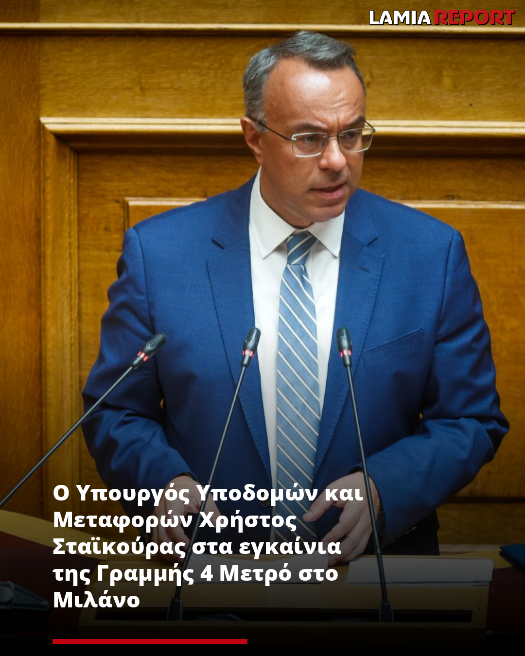 «Ο Υπουργός Υποδομών και Μεταφορών κ. Χρήστος Σταϊκούρας θα μεταβεί στο Μιλάνο, όπου, προσκεκλημένος από τον Δήμαρχο της πόλης κ. Giuseppe Sala, θα παραστεί το Σάββατο 12 Οκτωβρίου, στα εγκαίνια της Γραμμής 4 του Μετρό της πόλης.