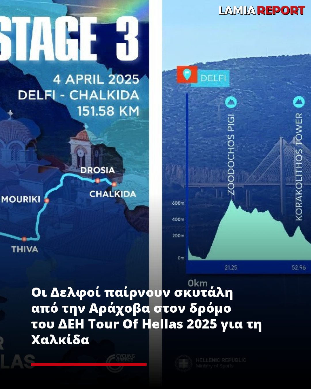 Οι Δελφοί παίρνουν σκυτάλη από την Αράχοβα στον δρόμο του ΔΕΗ Tour Of Hellas 2025 για τη Χαλκίδα