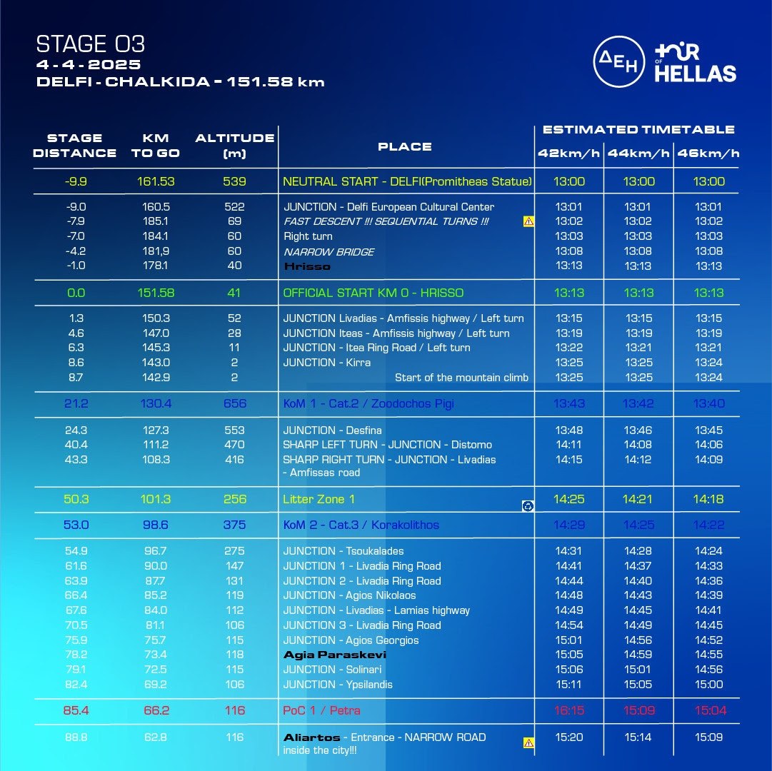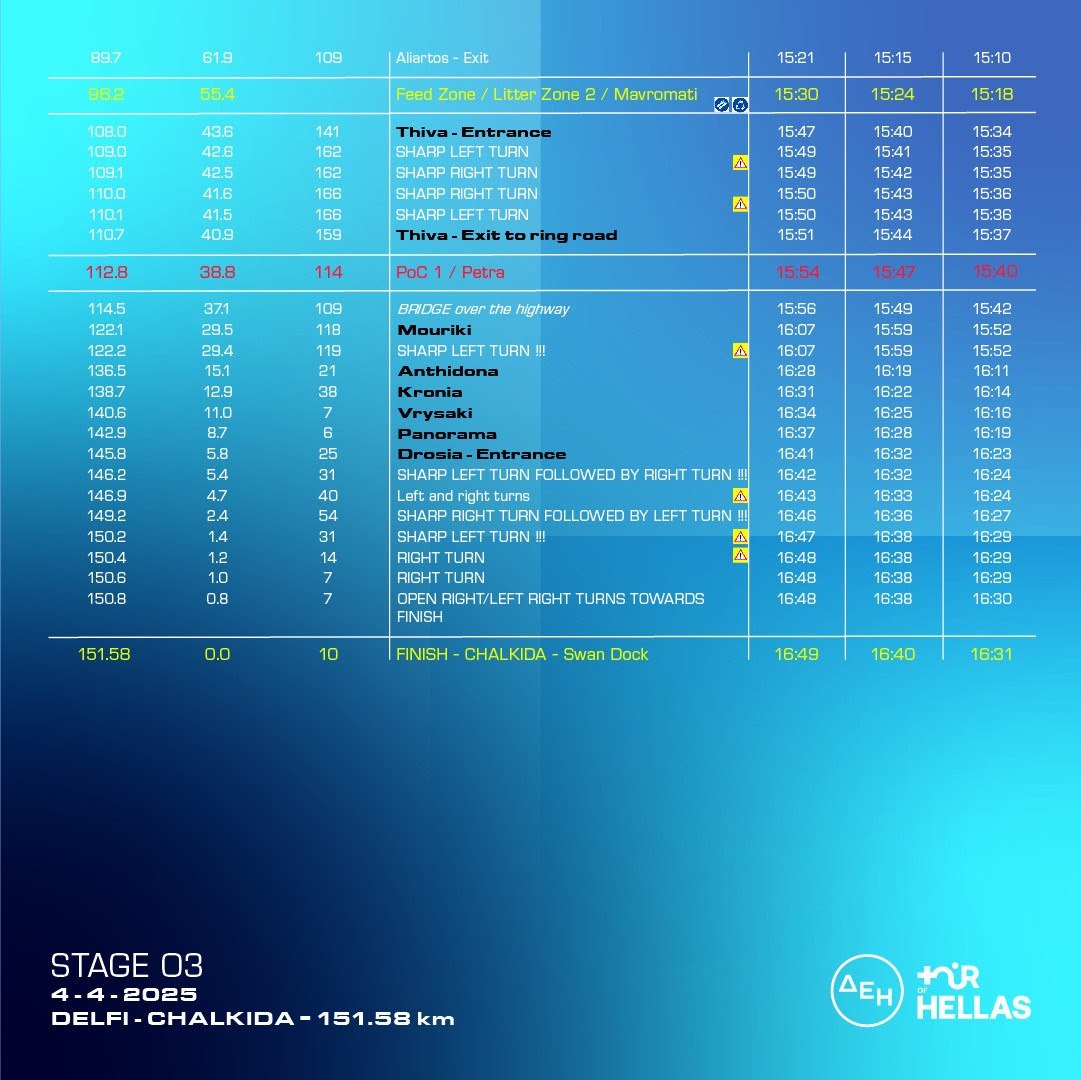Μετά τις εντυπωσιακές «μάχες» και τις συναρπαστικές διαδρομές, που μας προσέφεραν τα δύο πρώτα ετάπ του φετινού ΔΕΗ Tour of Hellas, ο αγώνας συνεχίζεται σήμερα Παρασκευή 4 Απριλίου, με το 3ο ετάπ.