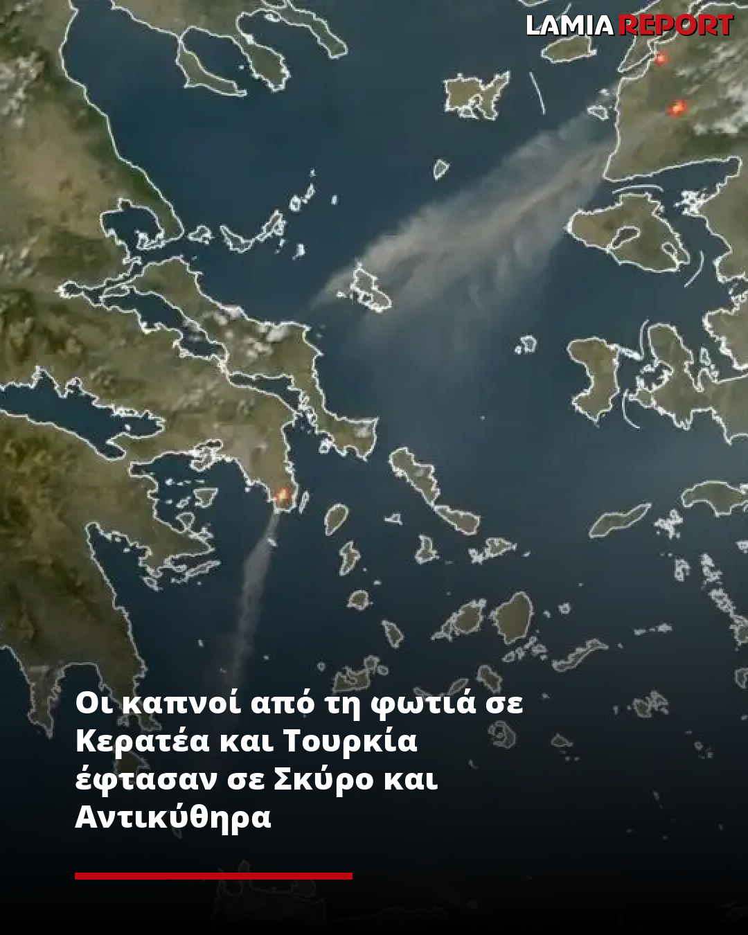 Οι καπνοί από τη φωτιά σε Κερατέα και Τουρκία έφτασαν σε Σκύρο και Αντικύθηρα