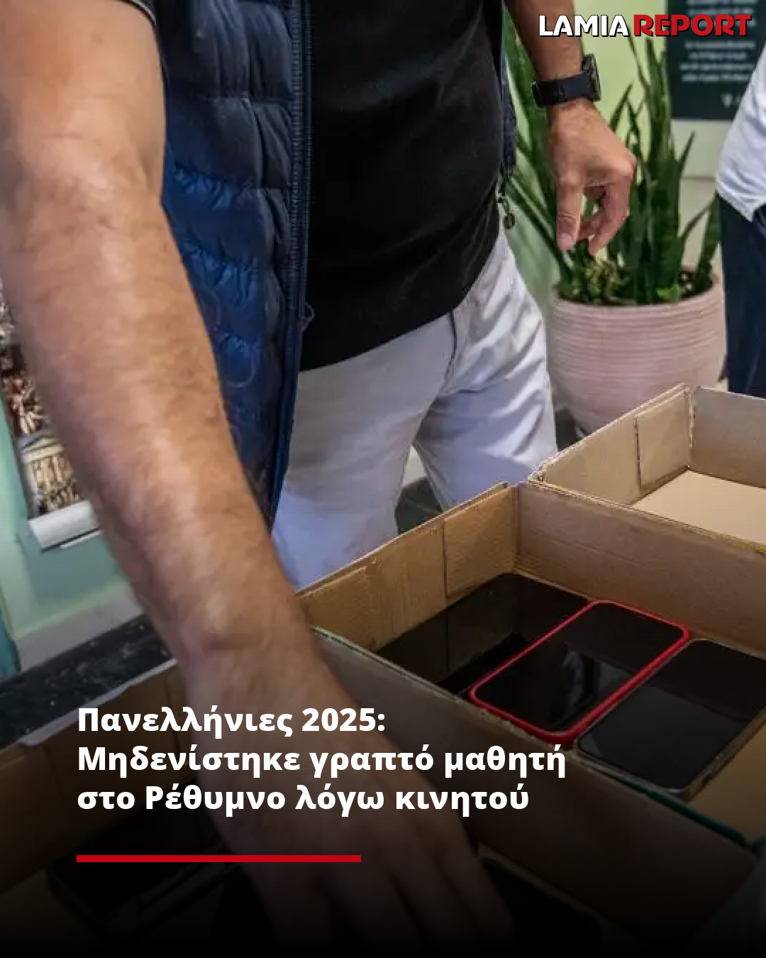 Μηδέν, πρώτου να ολοκληρώσει το γράψιμο για το πρώτο μάθημα στις Πανελλήνιες εξετάσεις, πήρε ένας μαθητής στο Ρέθυμνο. Ο λόγος δυστυχώς ήταν το κινητό του.