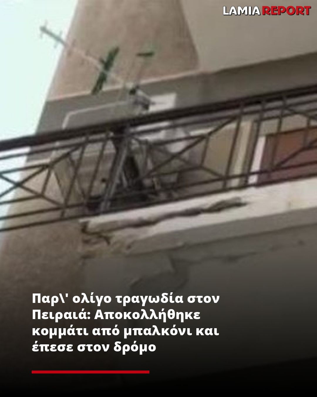 Παρ' ολίγο τραγωδία στον Πειραιά: Αποκολλήθηκε κομμάτι από μπαλκόνι και έπεσε στον δρόμο