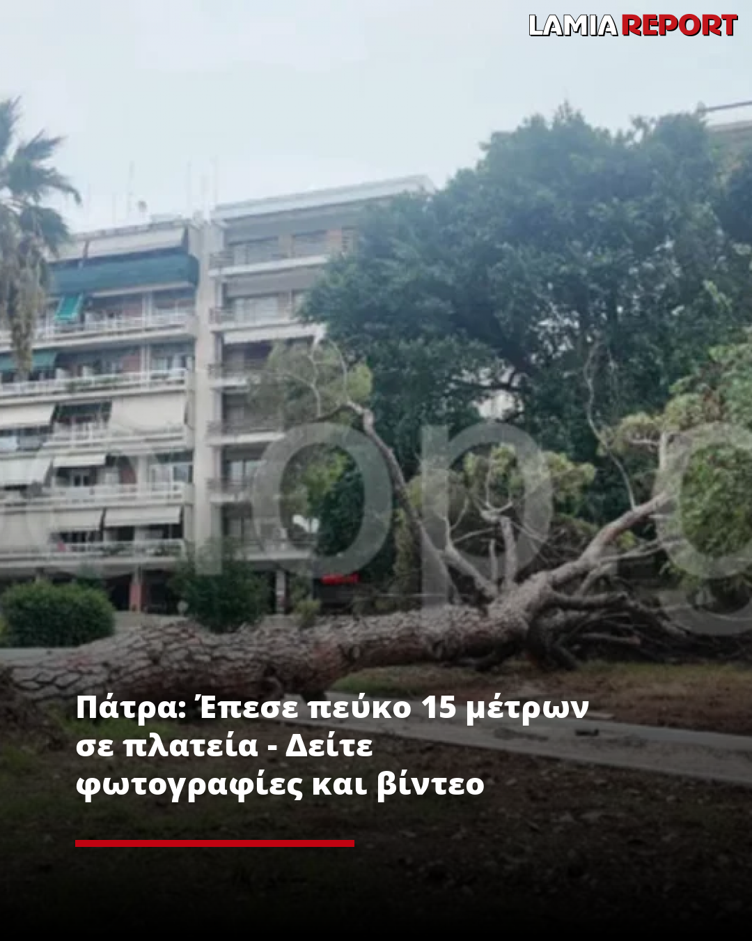 Πάτρα: Έπεσε πεύκο 15 μέτρων σε πλατεία - Δείτε φωτογραφίες και βίντεο